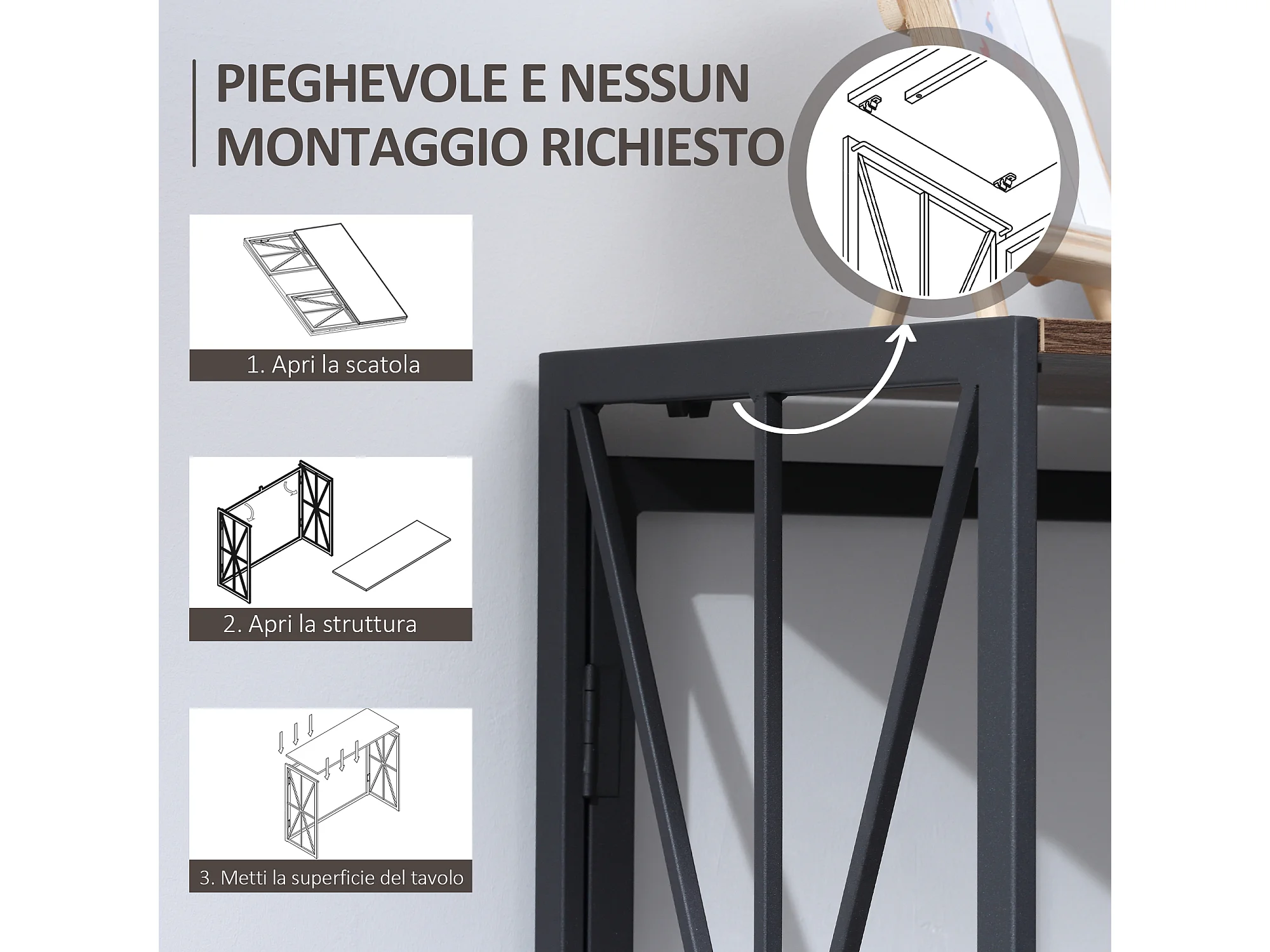Tavolo consolle da ingresso in stile industriale pieghevole