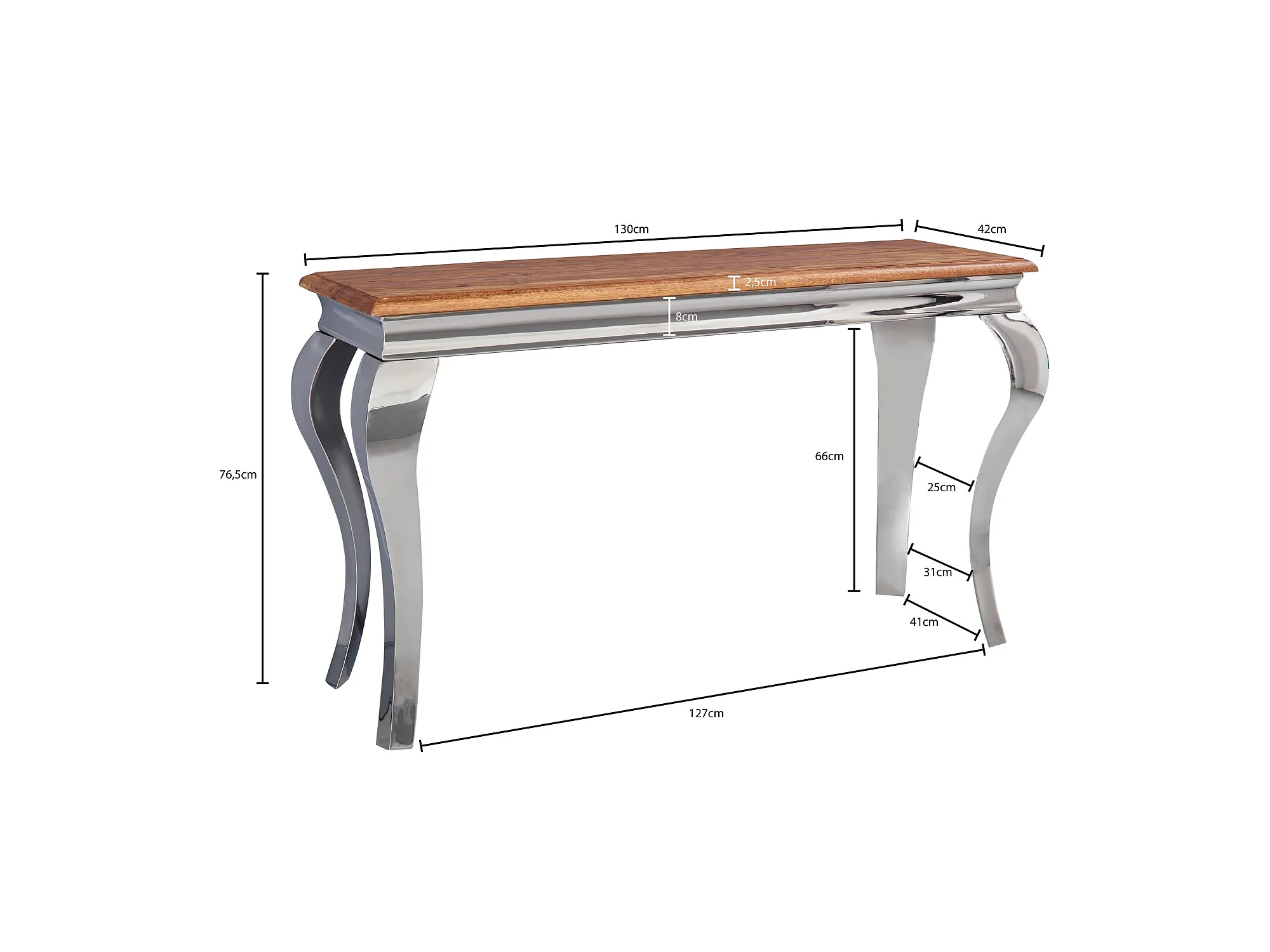 Consolle 90 cm scrivania acacia in legno massello / toletta in metallo