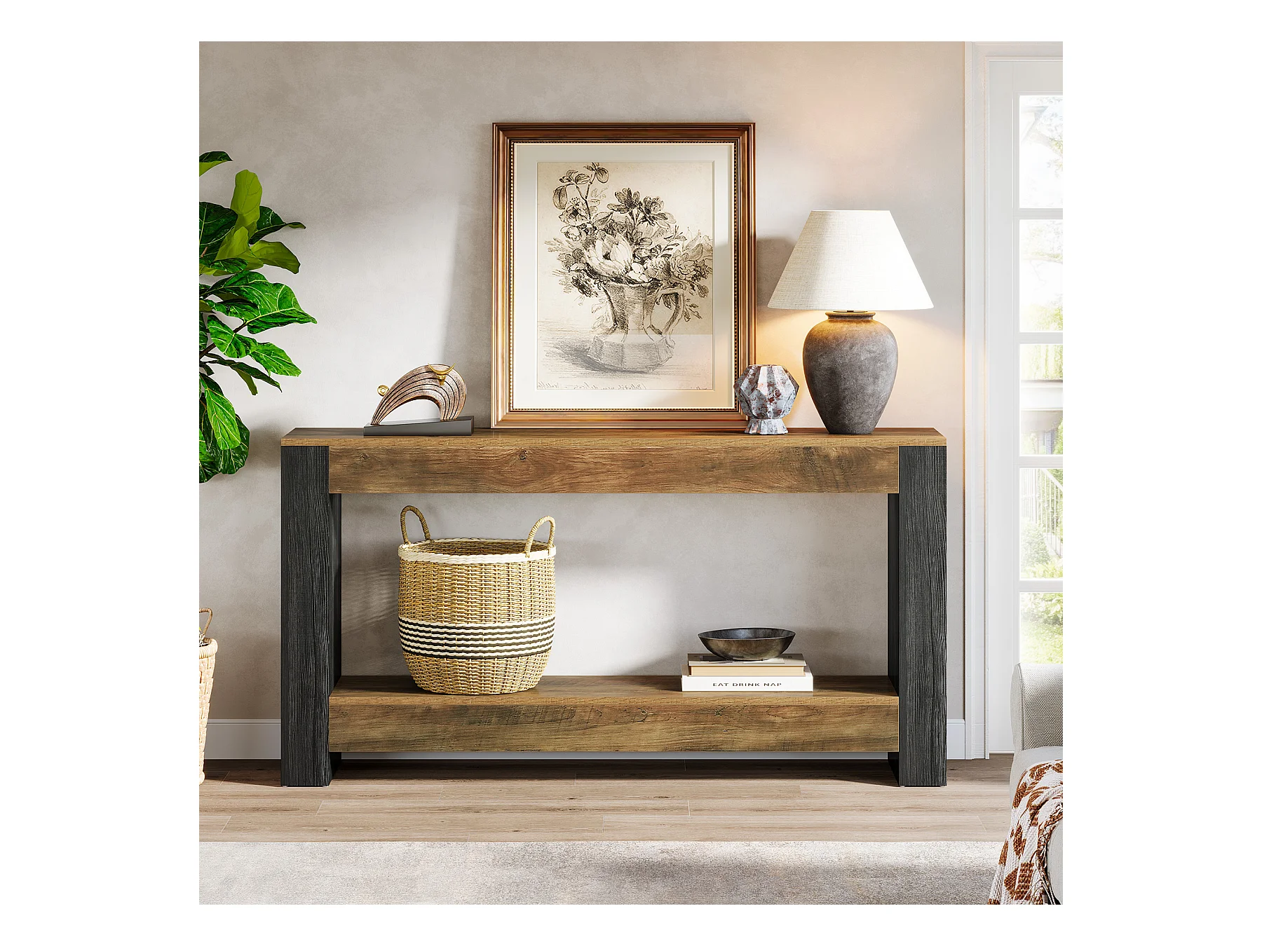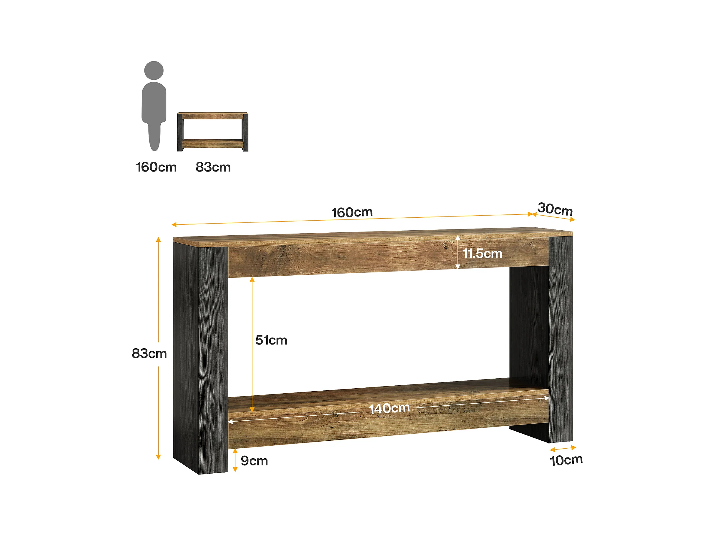 Tavolo consolle lungo 160 cm, tavolo da ingresso in stile rustico dietro il divano