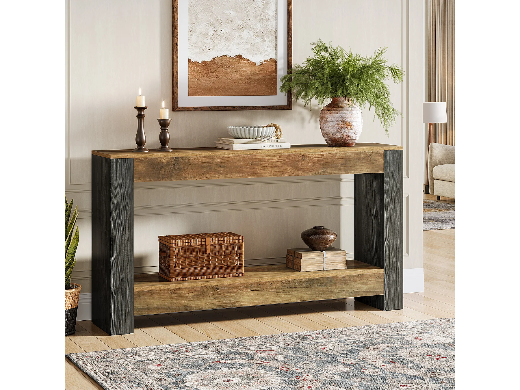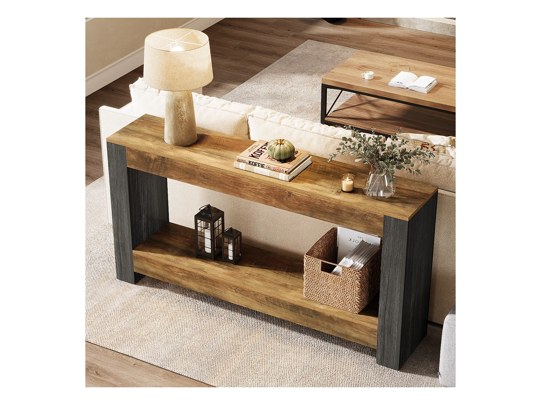 Tavolo consolle da fattoria da 108 cm, tavolo stretto in legno dietro il divano con base geometrica