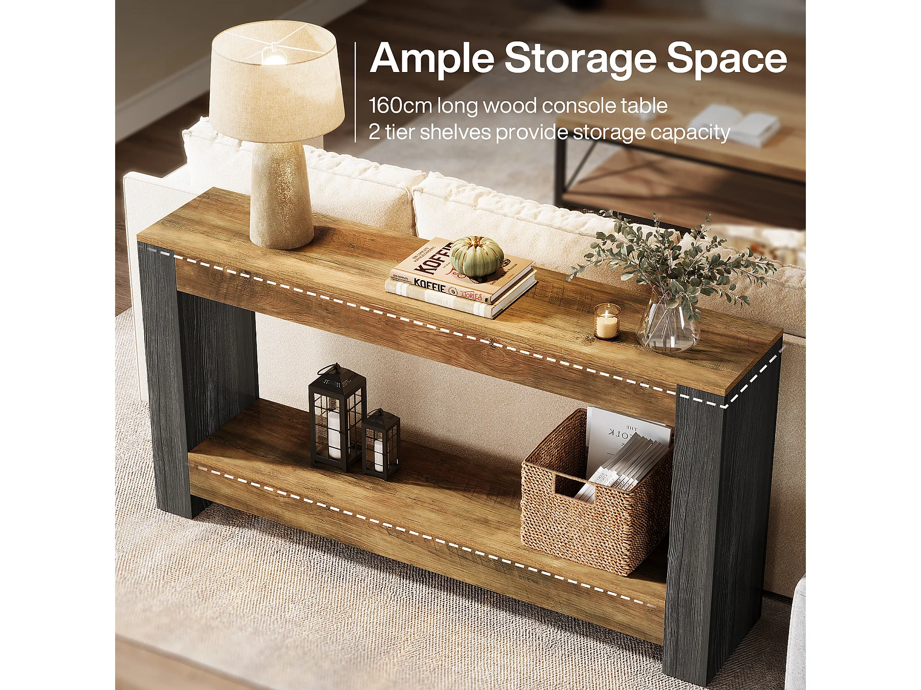 Tavolo consolle lungo 160 cm, tavolo da divano rettangolare in legno dietro il divano, stile fattoria
