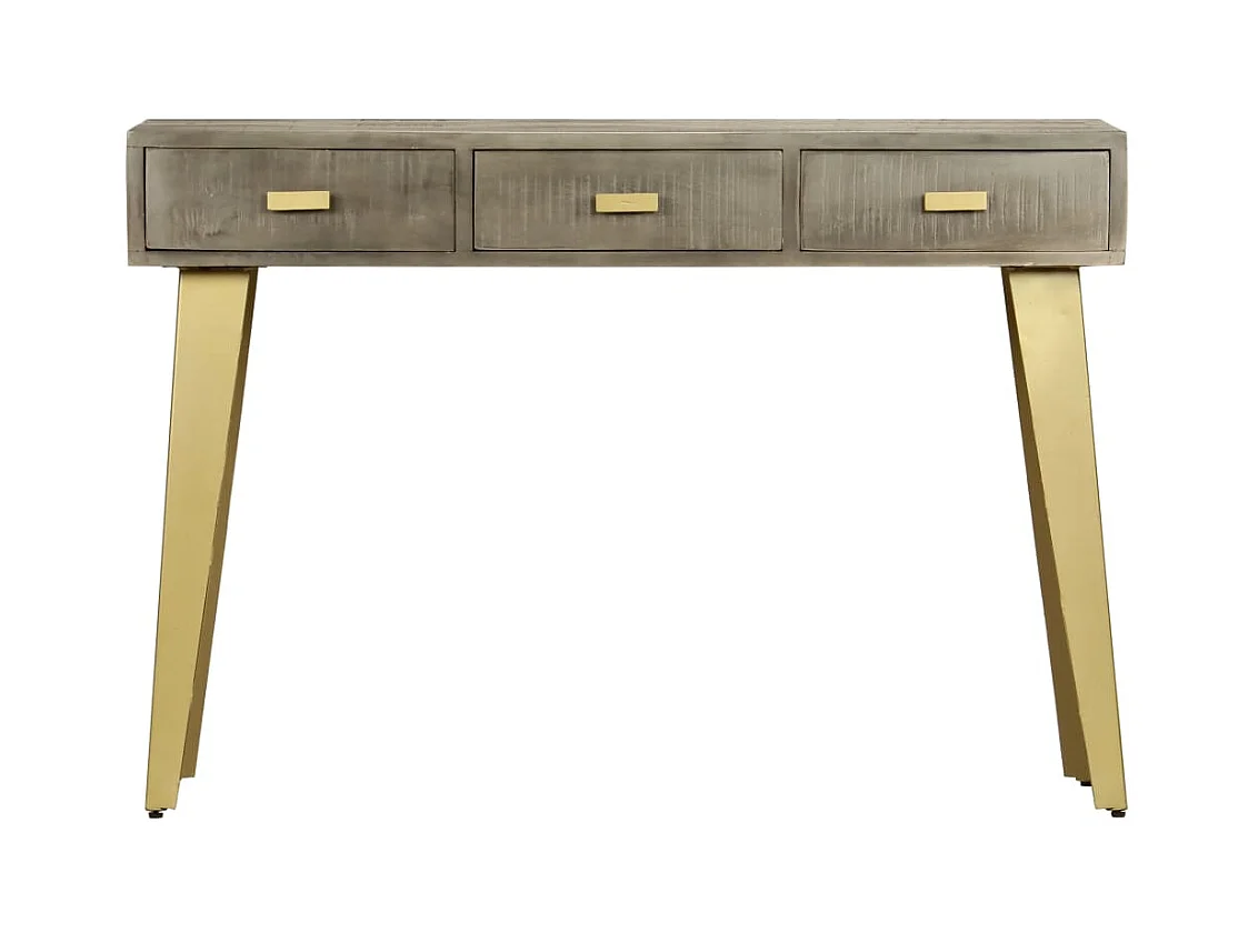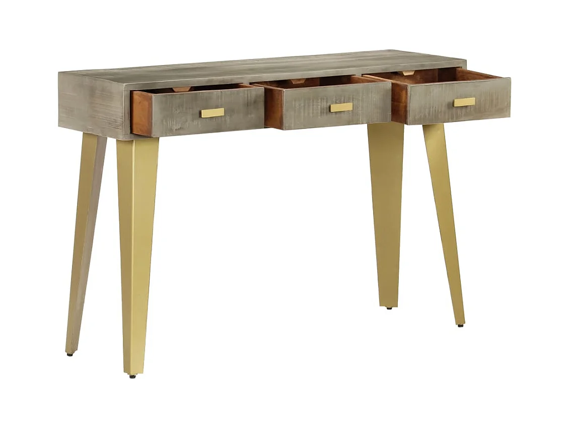 Tavolo Consolle Massello di Mango Grigio e Ottone 110x35x76 cm