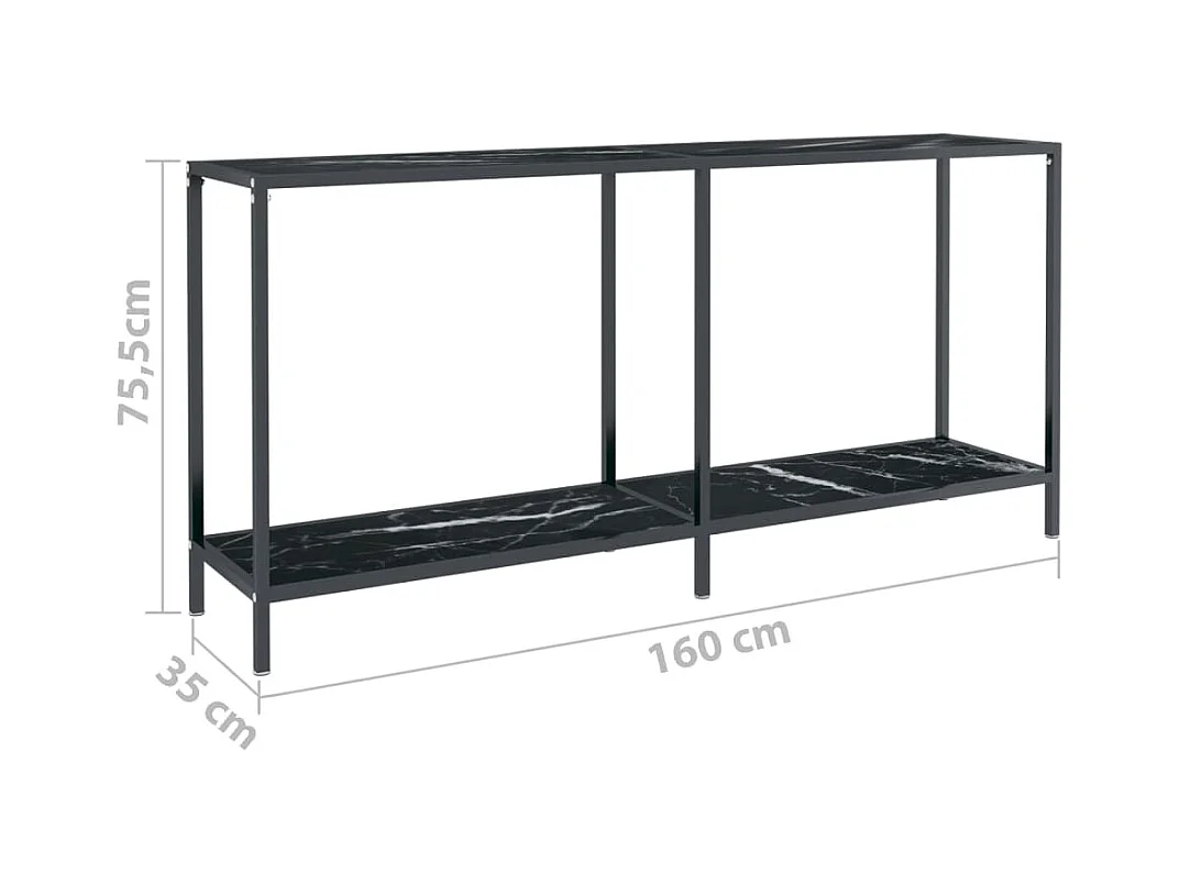 Tavolo Consolle Nero 160x35x75,5 cm in Vetro Temperato