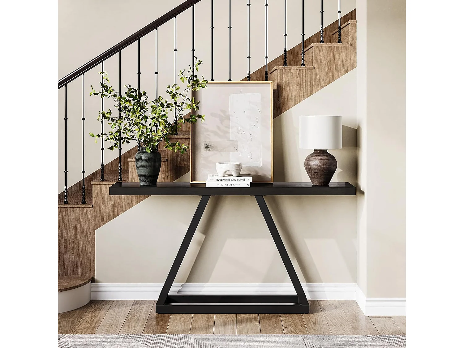 Tavolo consolle stretto da 160 cm, tavolino lungo dietro il divano per ingresso, corridoio, soggiorno, nero