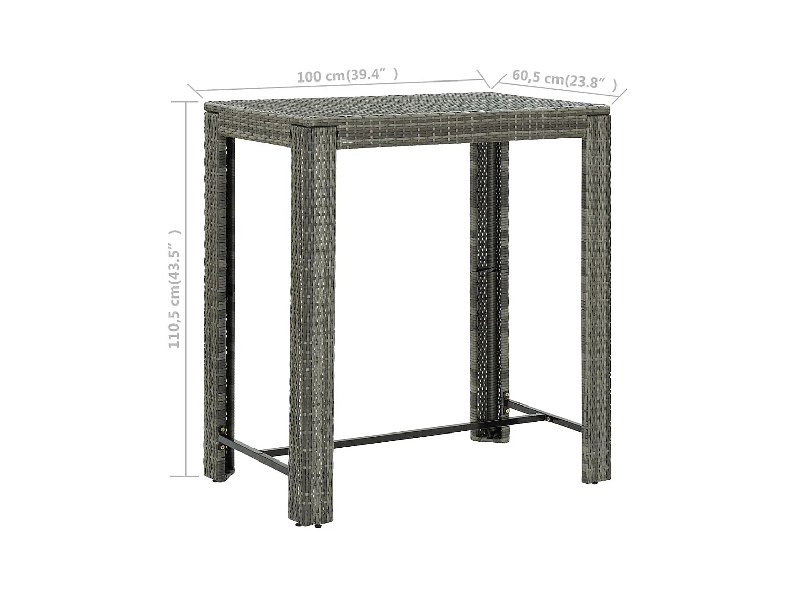 Tavolo da Bar da Giardino Grigio 100x60,5x110,5 cm Polyrattan