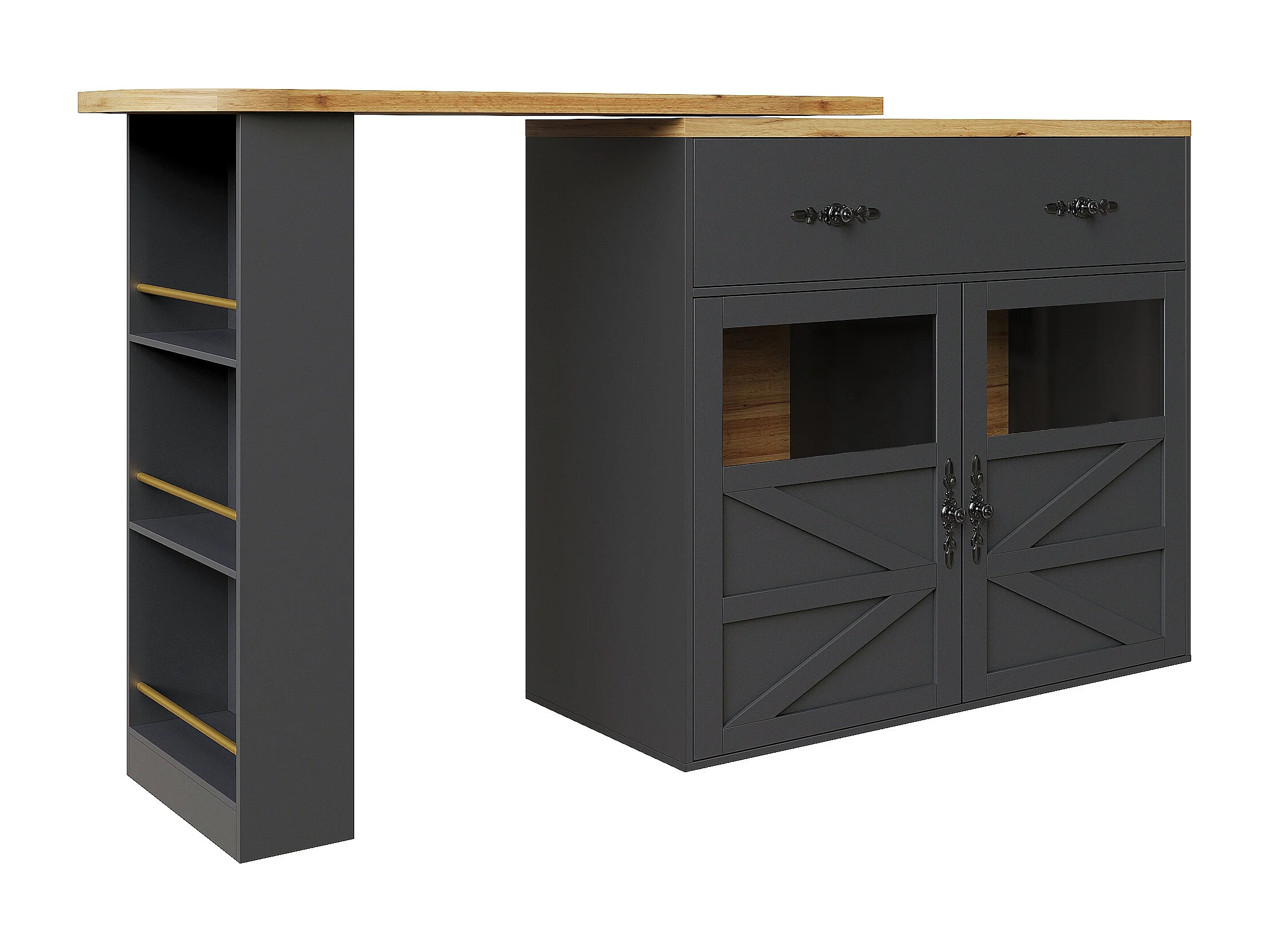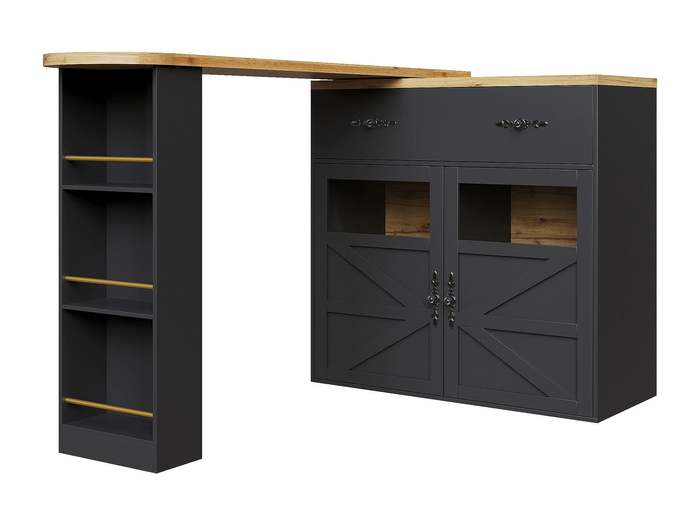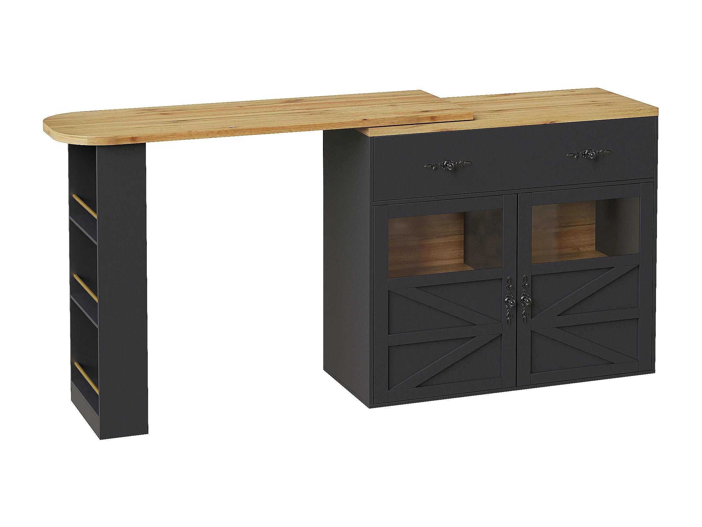 Tavolo da bar girevole in legno a 2 ante e 1 cassetto con piano estensibile - (138-204)x39x104 cm - nero