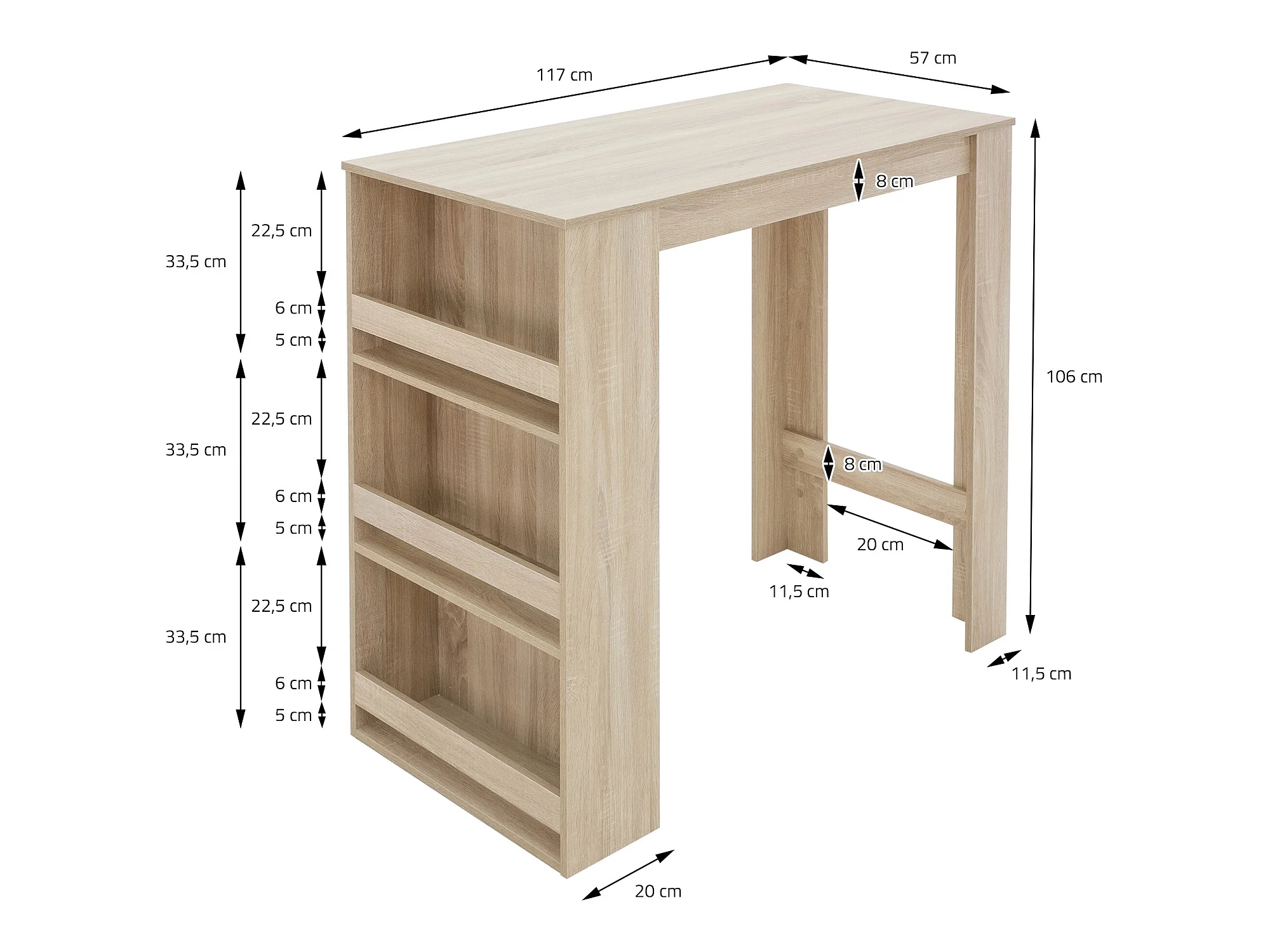 Tavolo da bar in rovere Sonoma con 3 ripiani tavolo da cucina bistrot ML-DESIGN