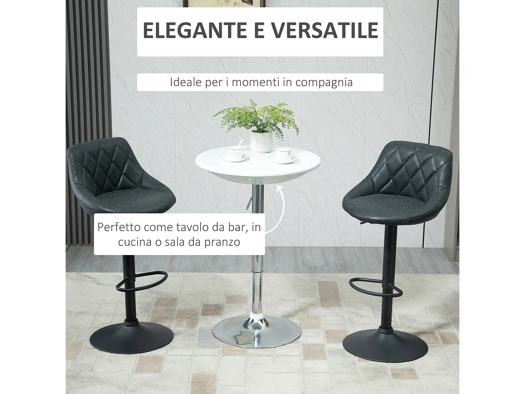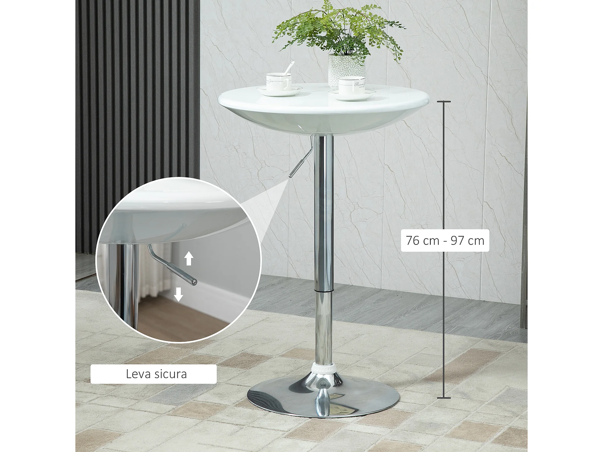 Tavolo da bar rotondo altezza regolabile piano girevole bianco
