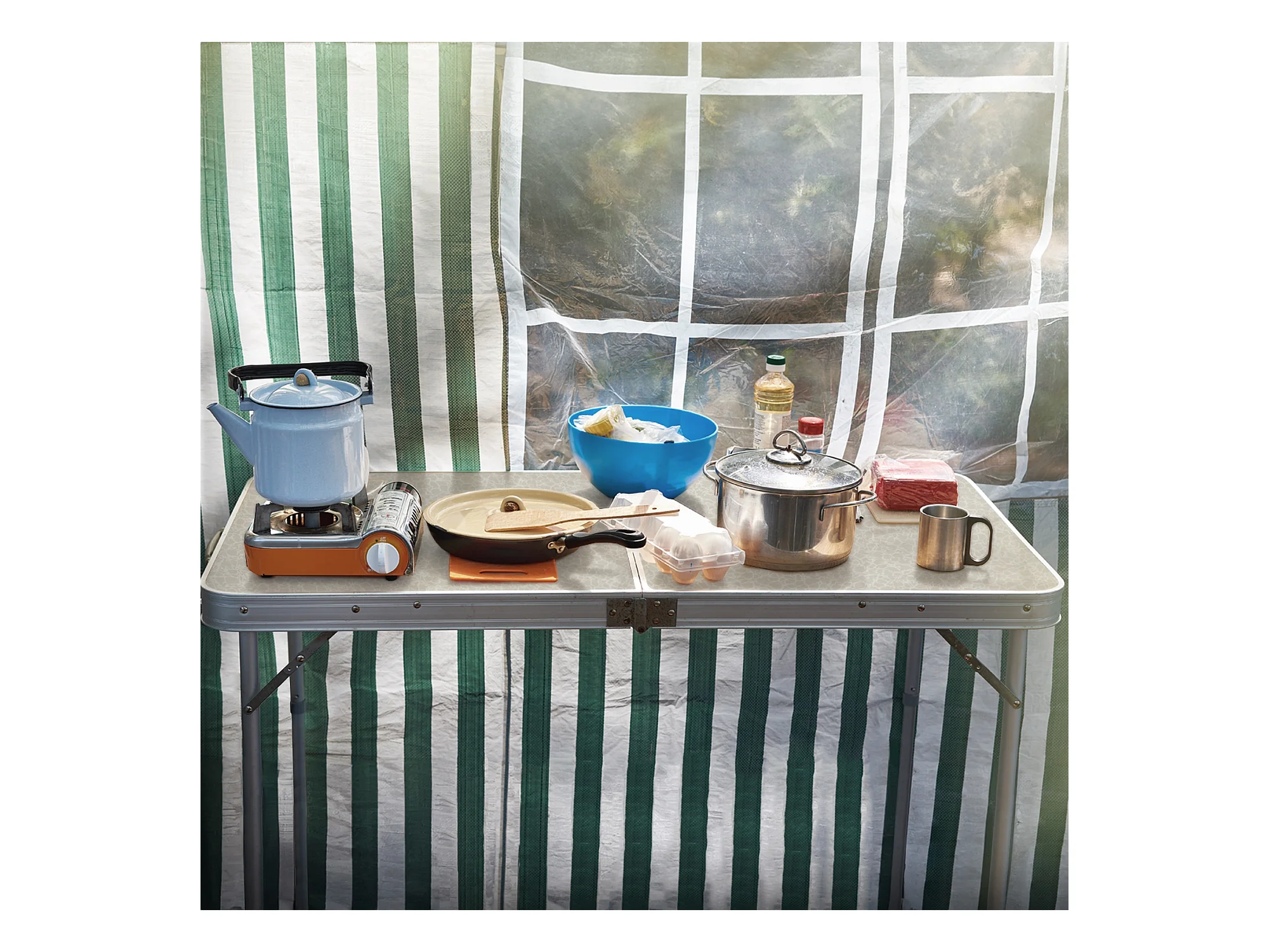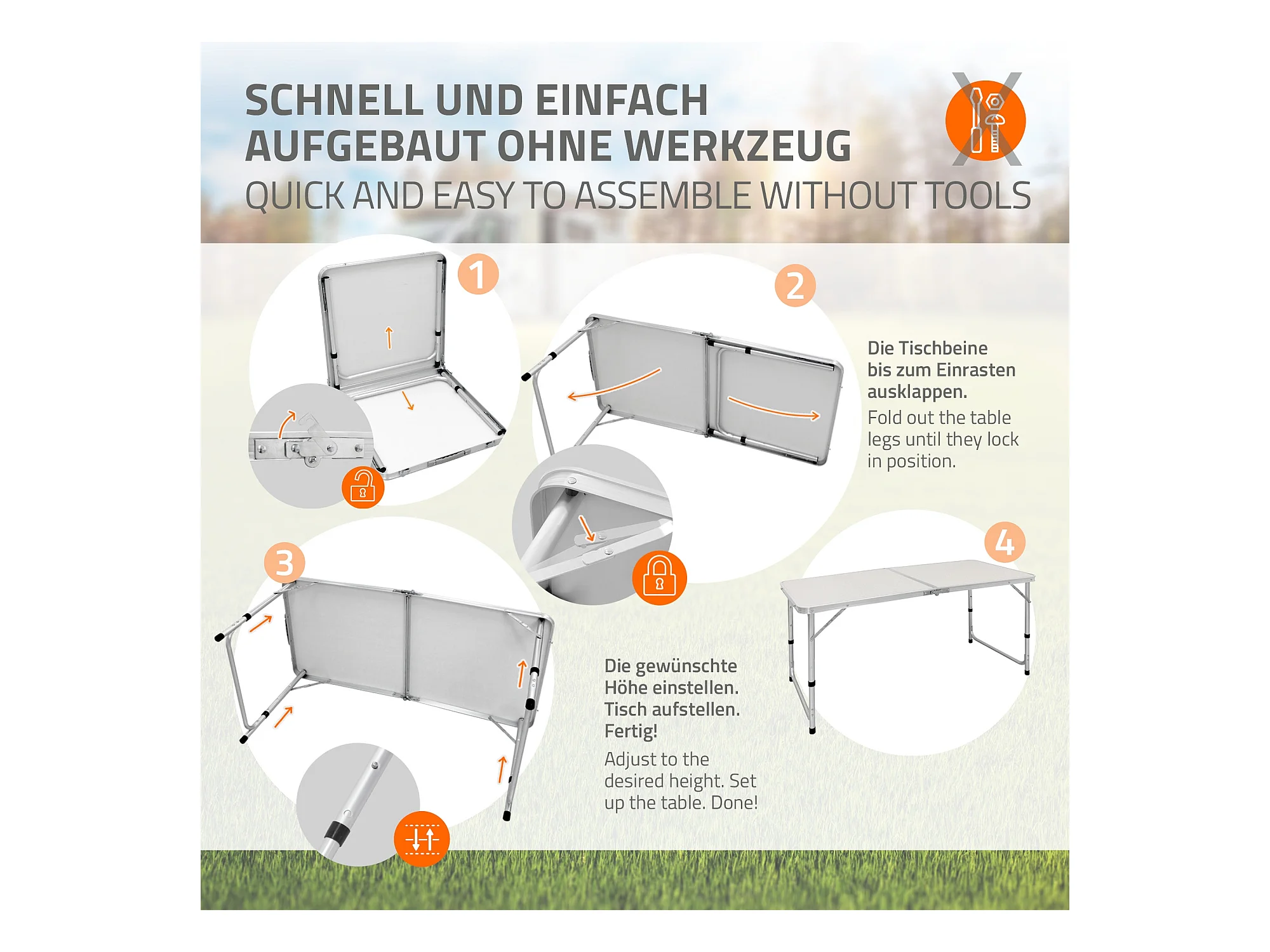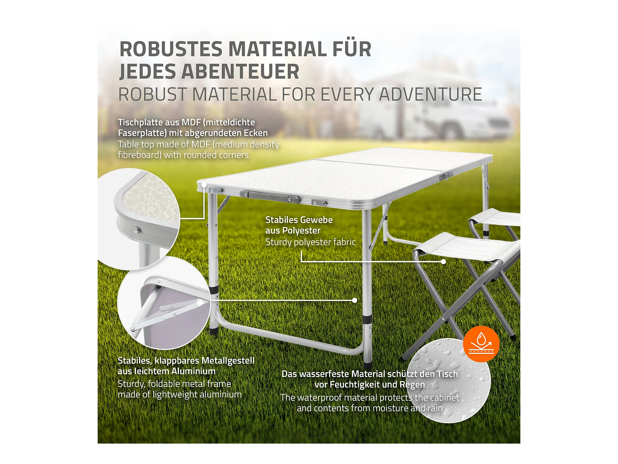 Tavolo da campeggio set con 4 sedie pieghevole in alluminio 120cm bianco / crema