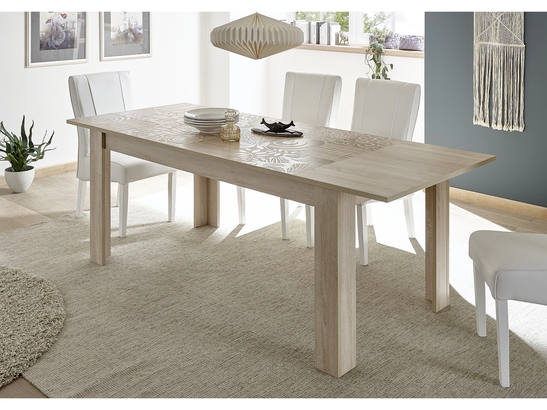 Tavolo da cucina allungabile design moderno disegni geometrici serigrafato 137x90 TCL18 rovere samoa