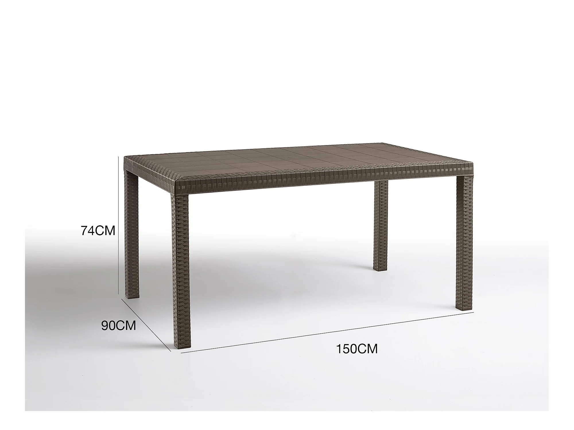 Tavolo da esterno Giove, Tavolo rettangolare da giardino, Tavolo da giardino multiuso effetto rattan, 100% Made in Italy, 150x90h74 cm, Marrone