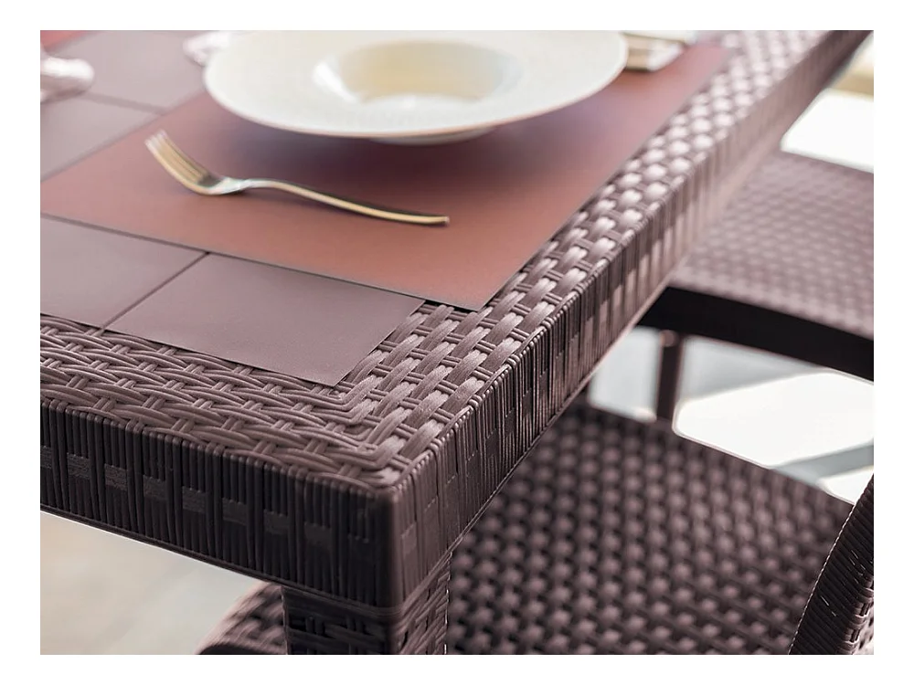 MilaniHome.it - Tavolo Da Giardino Rettangolare Fisso In Wicker Stampato Marrone Cm 150x90 Da Esterno Giardino Terrazzo Portico Locale Bardi coloreMarrone