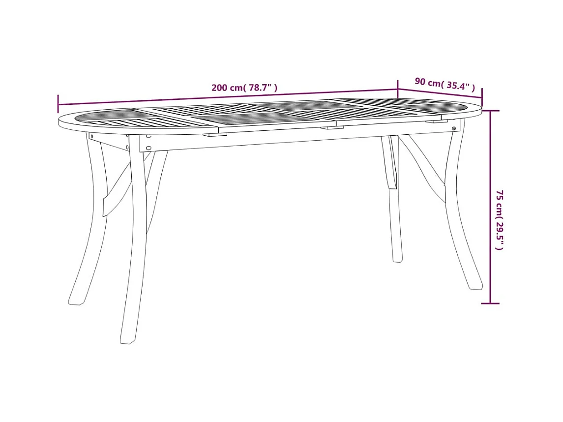 Tavolo da Giardino 200x90x75 cm Legno Massello di Acacia