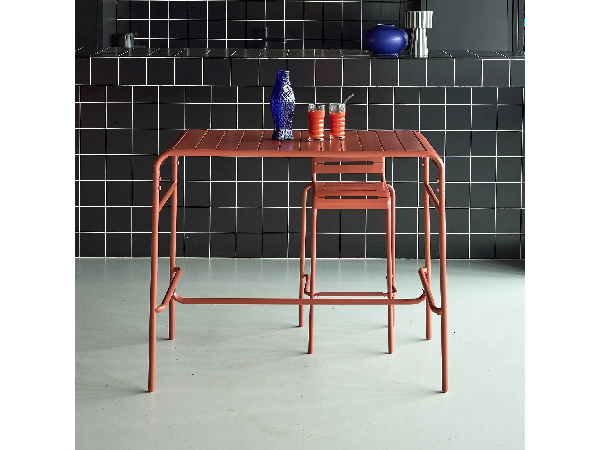 Tavolo alto da giardino in acciaio, 4 posti, 120cm, terracotta