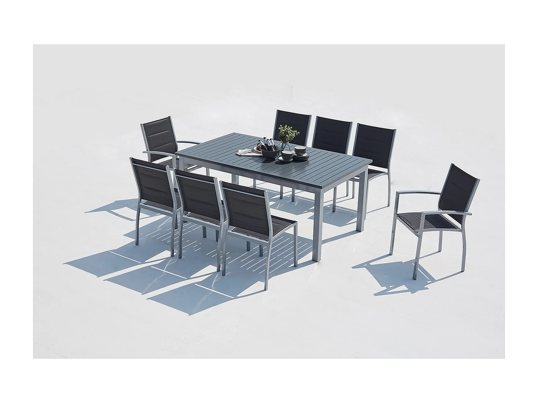 Tavolo da giardino allungabile alluminio + 8 sedie textilene grigio AREZZO