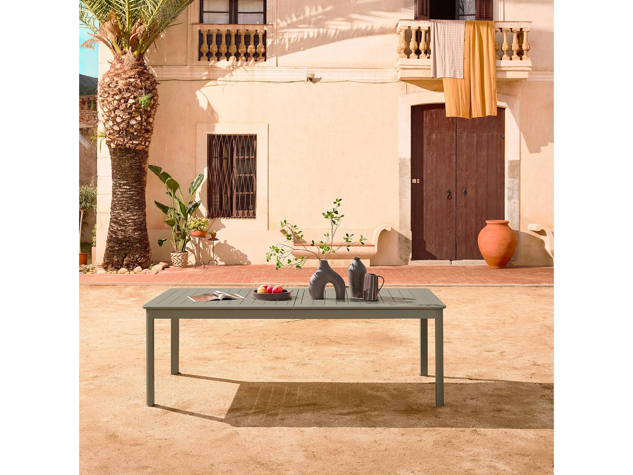 Tavolo da giardino allungabile in alluminio, 8 posti, verde kaki