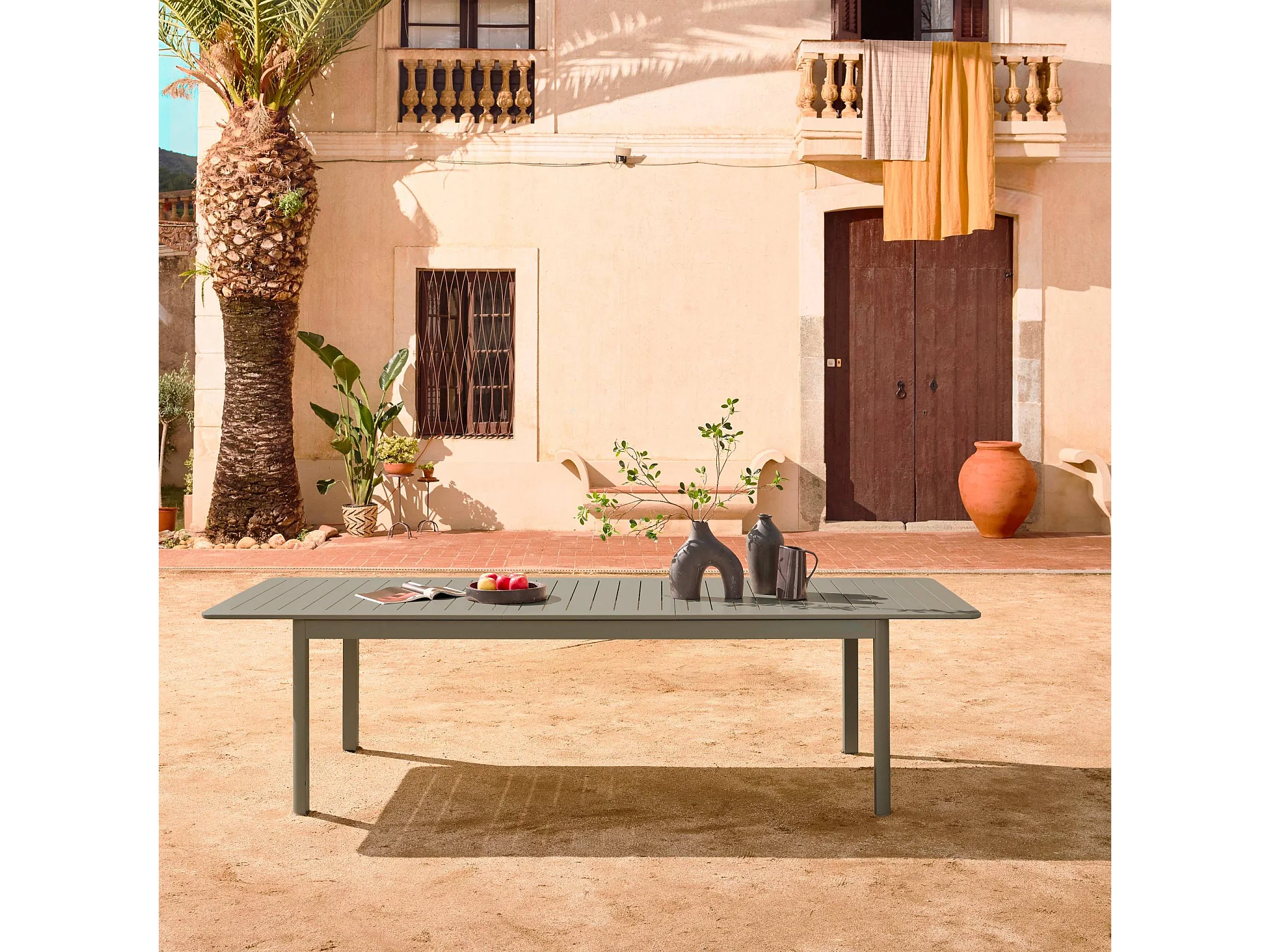 Tavolo da giardino allungabile in alluminio, 10 posti, verde kaki