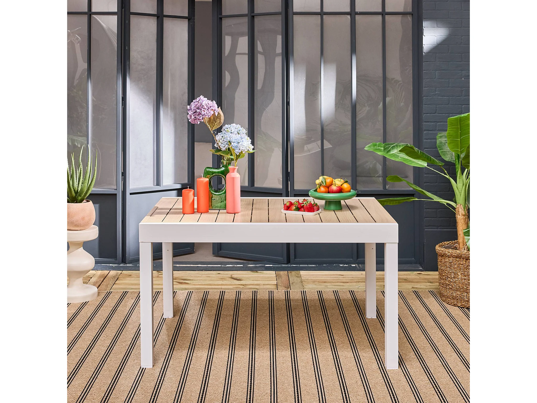 Tavolo da giardino allungabile in alluminio, 8 posti, bianco