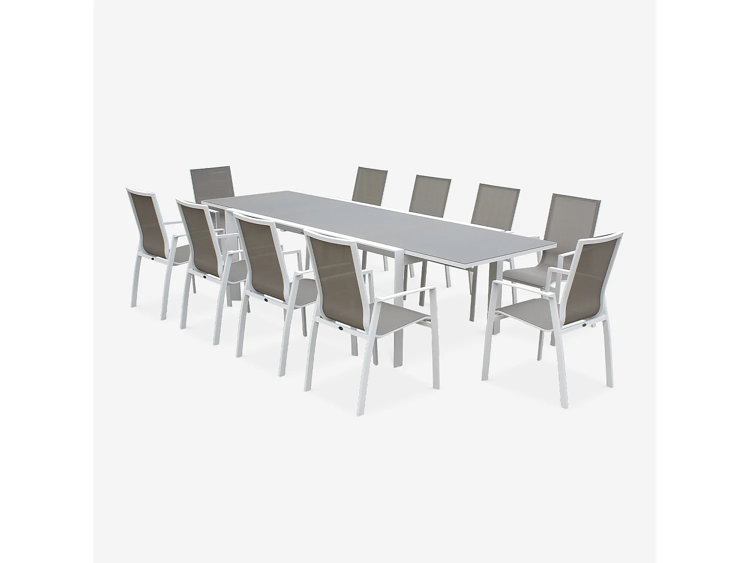 Set tavolo da giardino allungabile in alluminio, 8 sedie, bianco