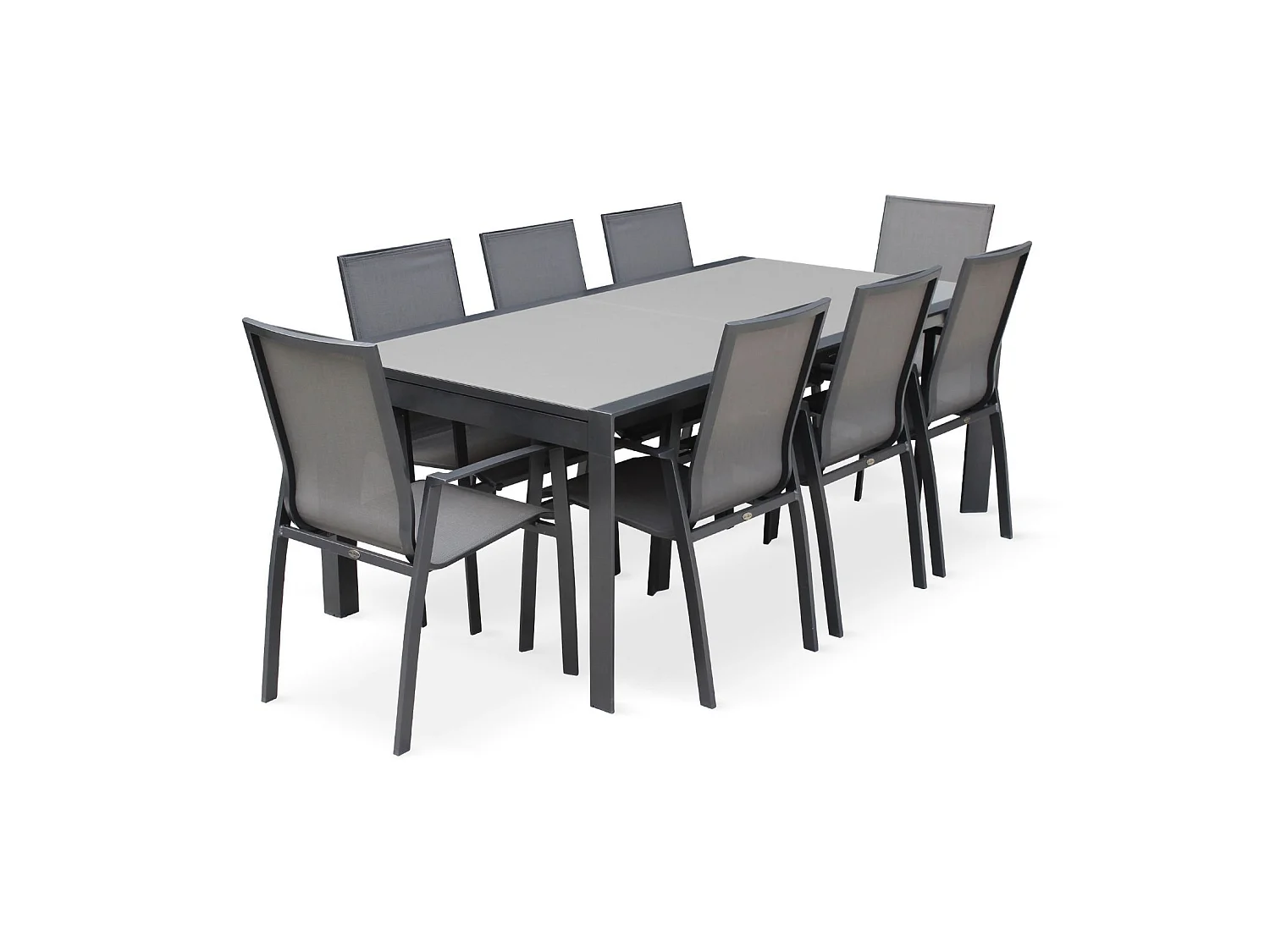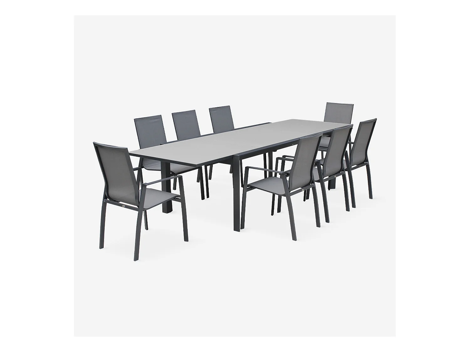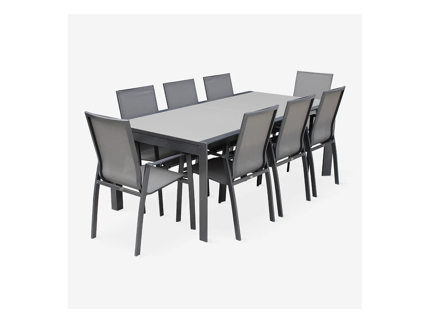 Set tavolo da giardino allungabile in alluminio, 8 sedie, grigio scuro