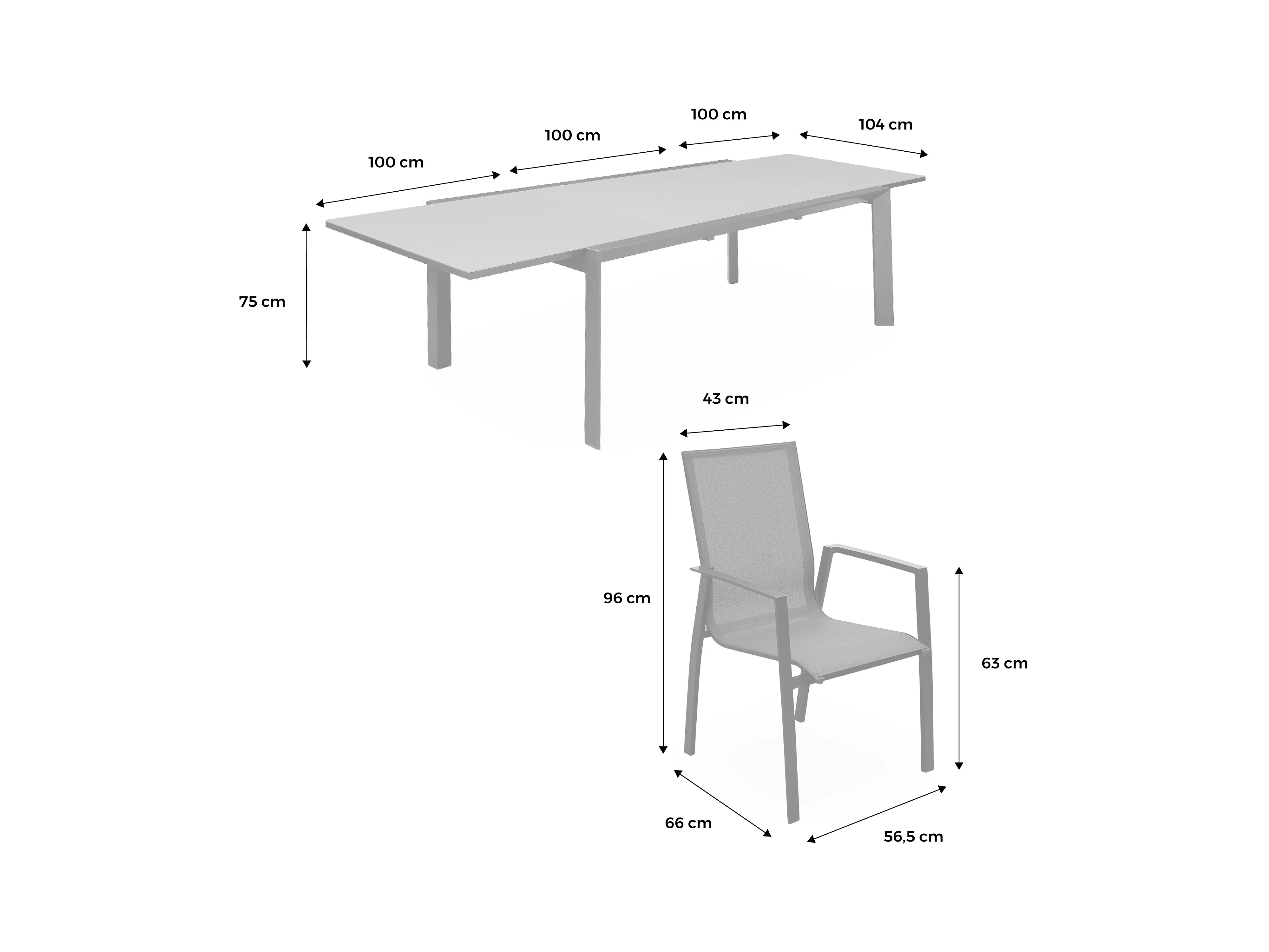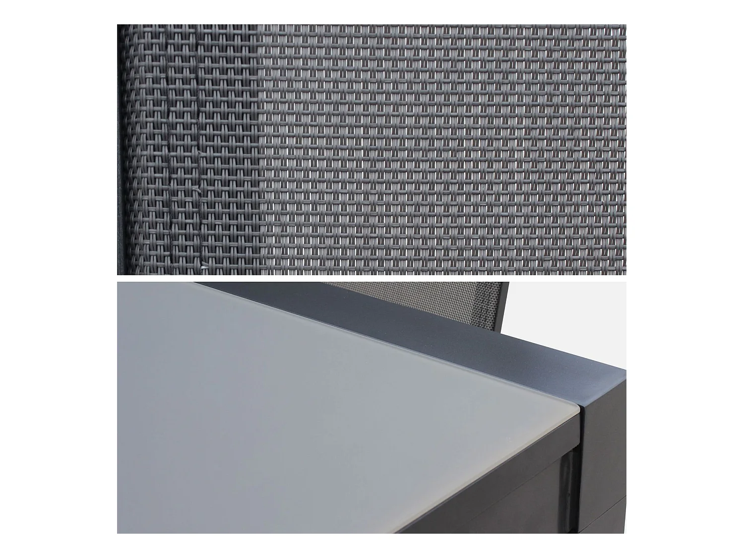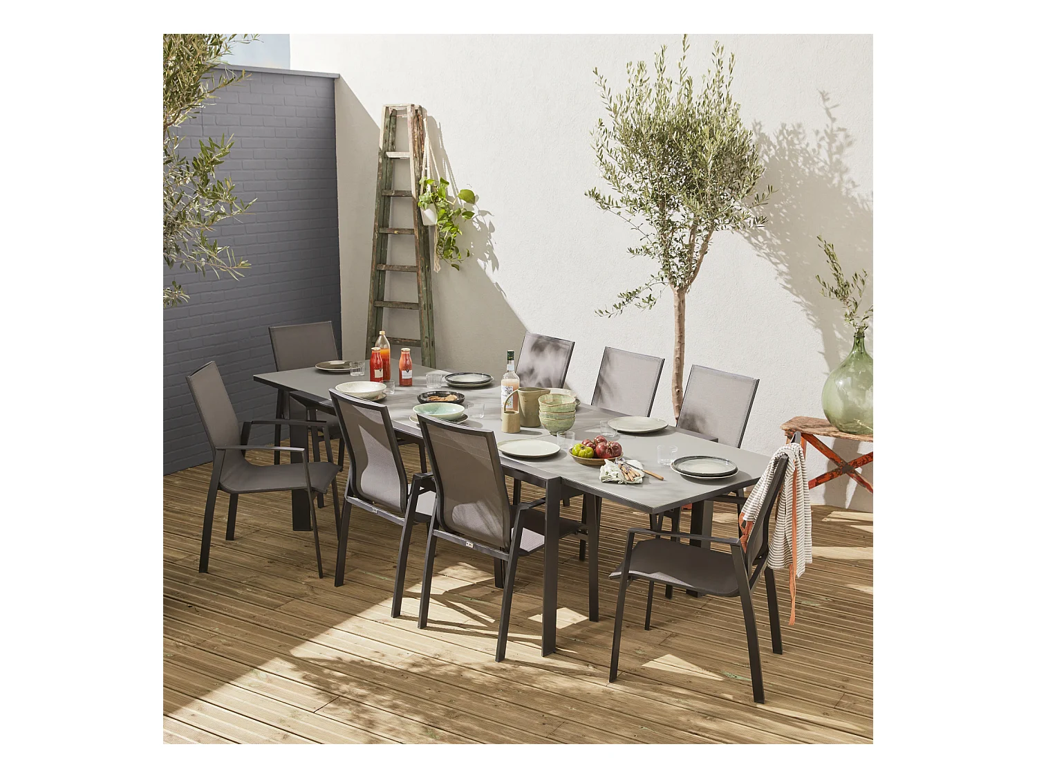 Set tavolo da giardino allungabile in alluminio, 8 sedie, grigio scuro