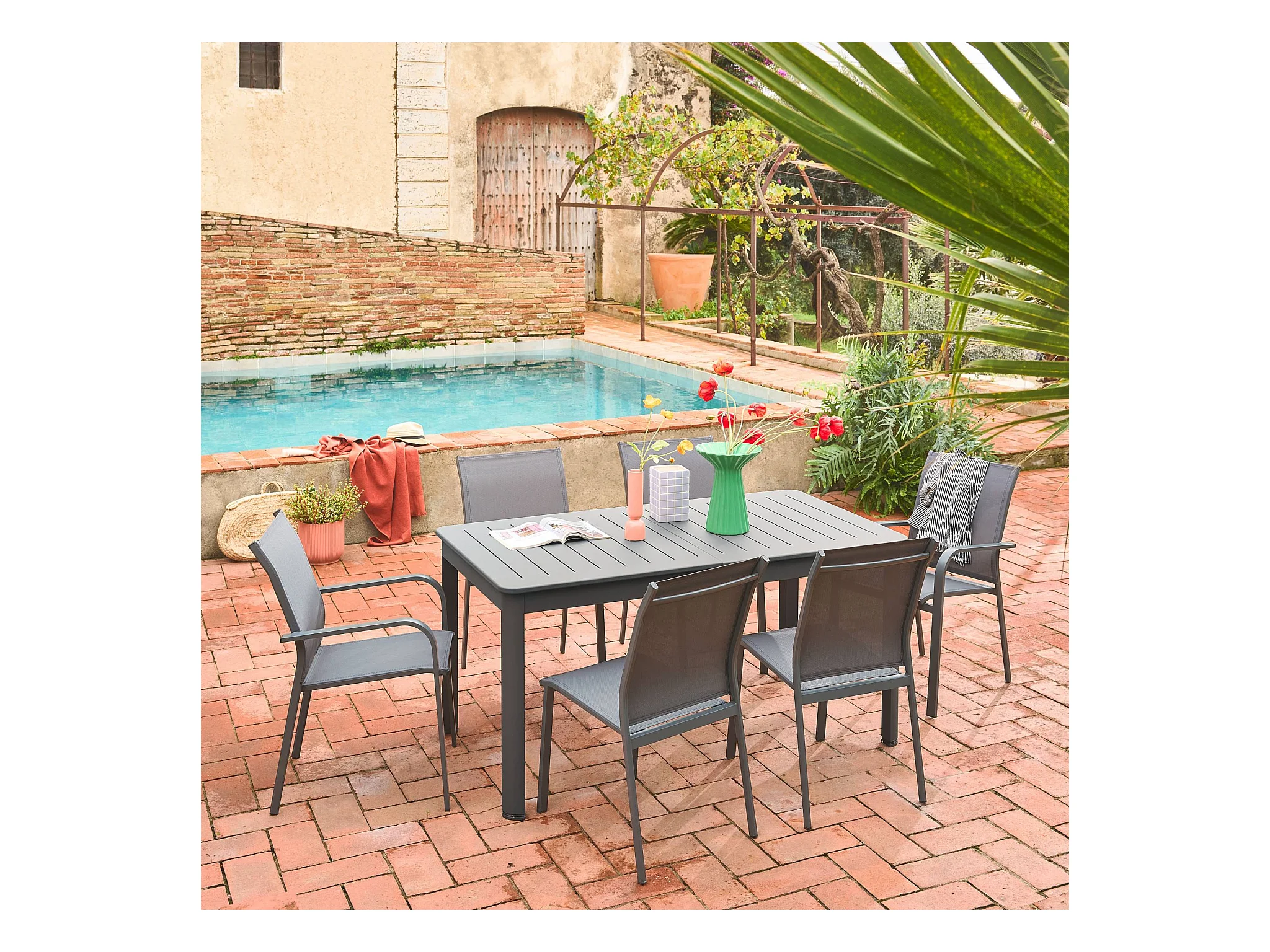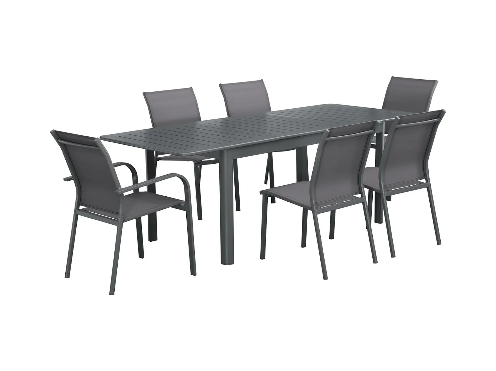 Tavolo da giardino allungabile in alluminio e 6 sedie in textilene BRESCIA