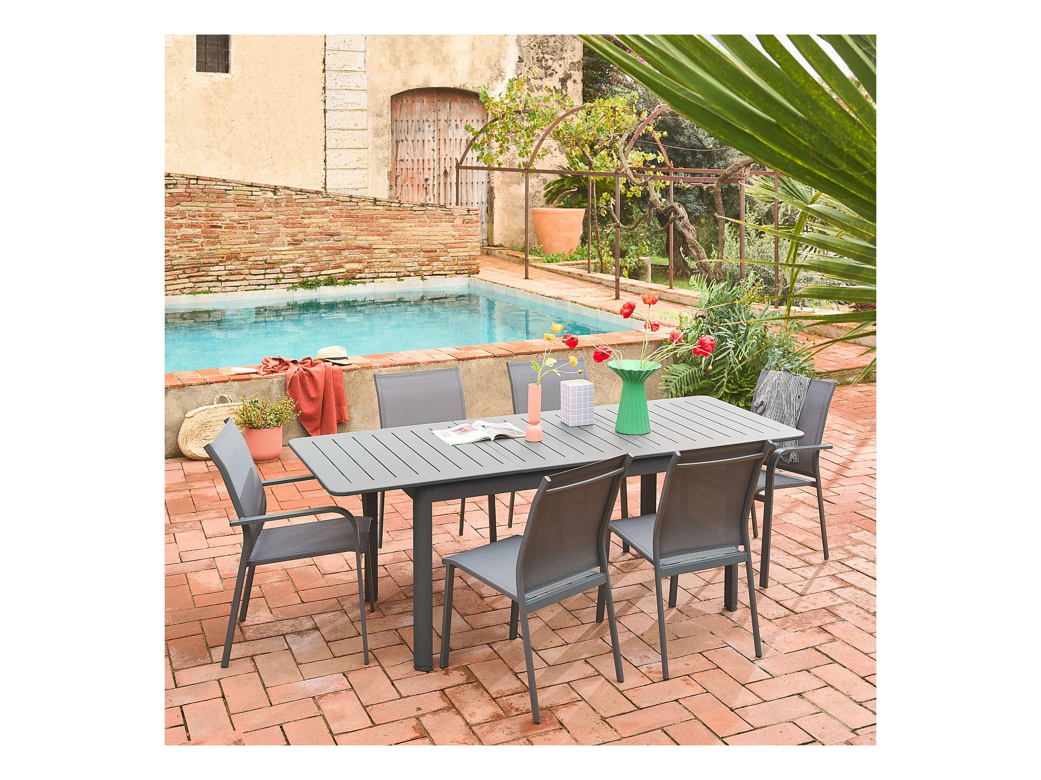 Set tavolo da giardino allungabile in alluminio, 6 posti, grigio