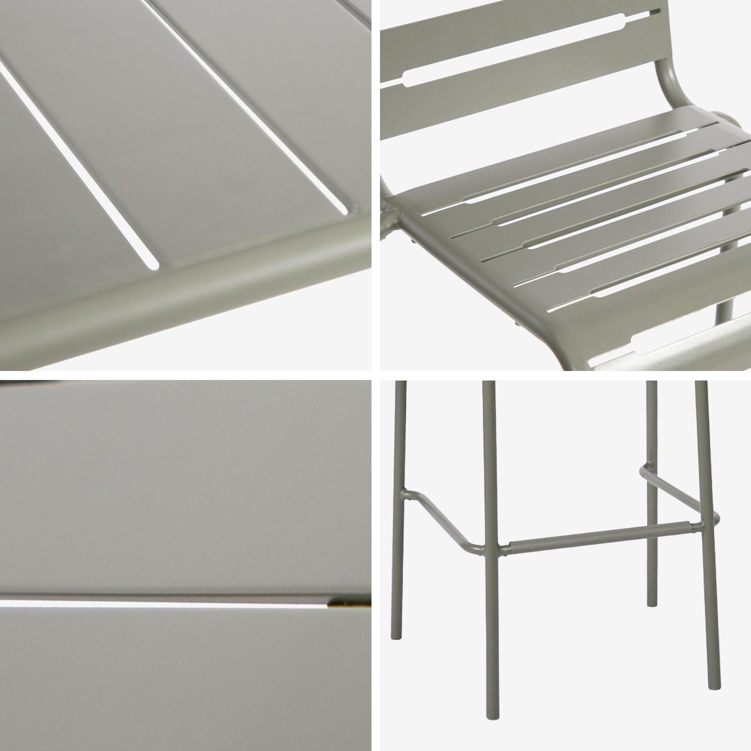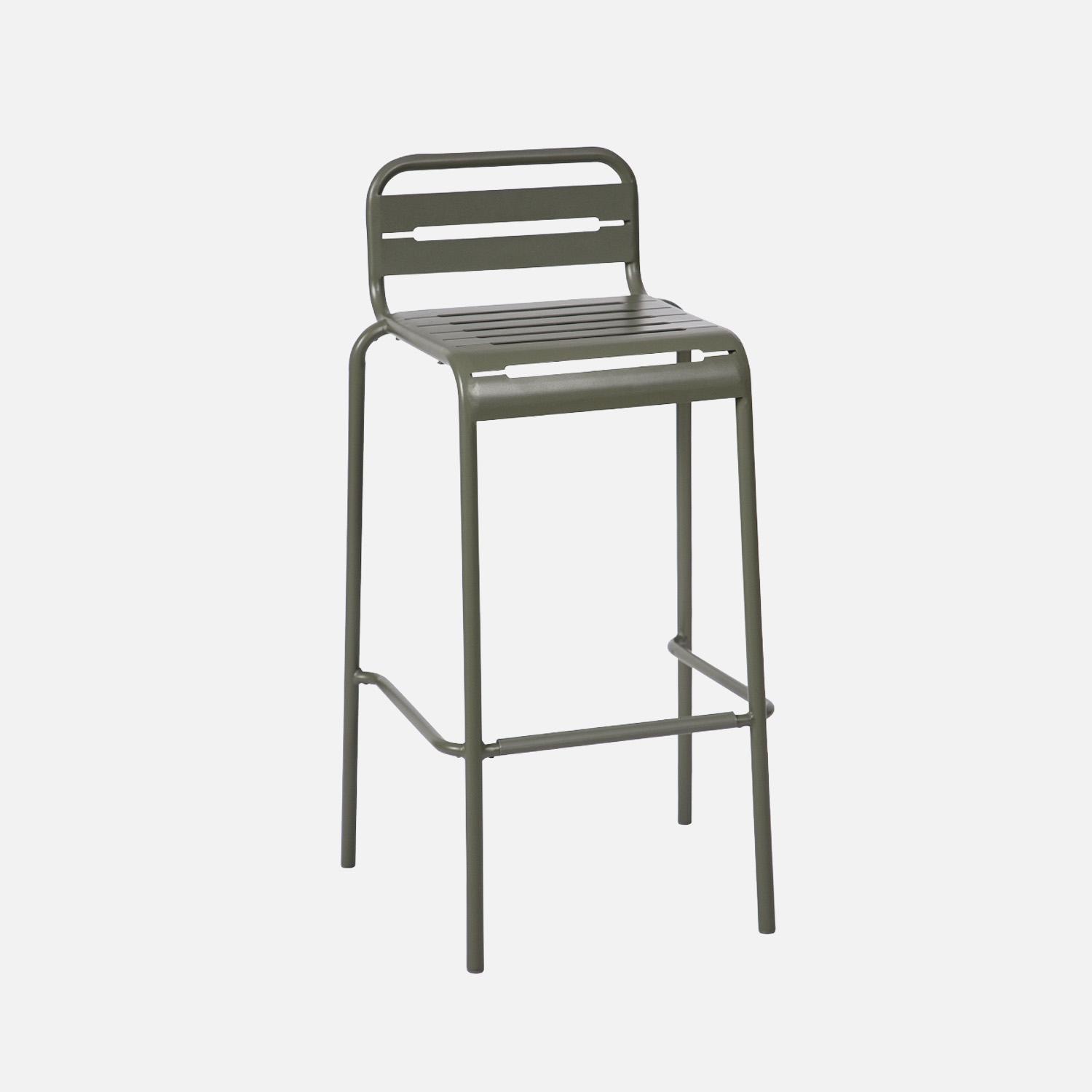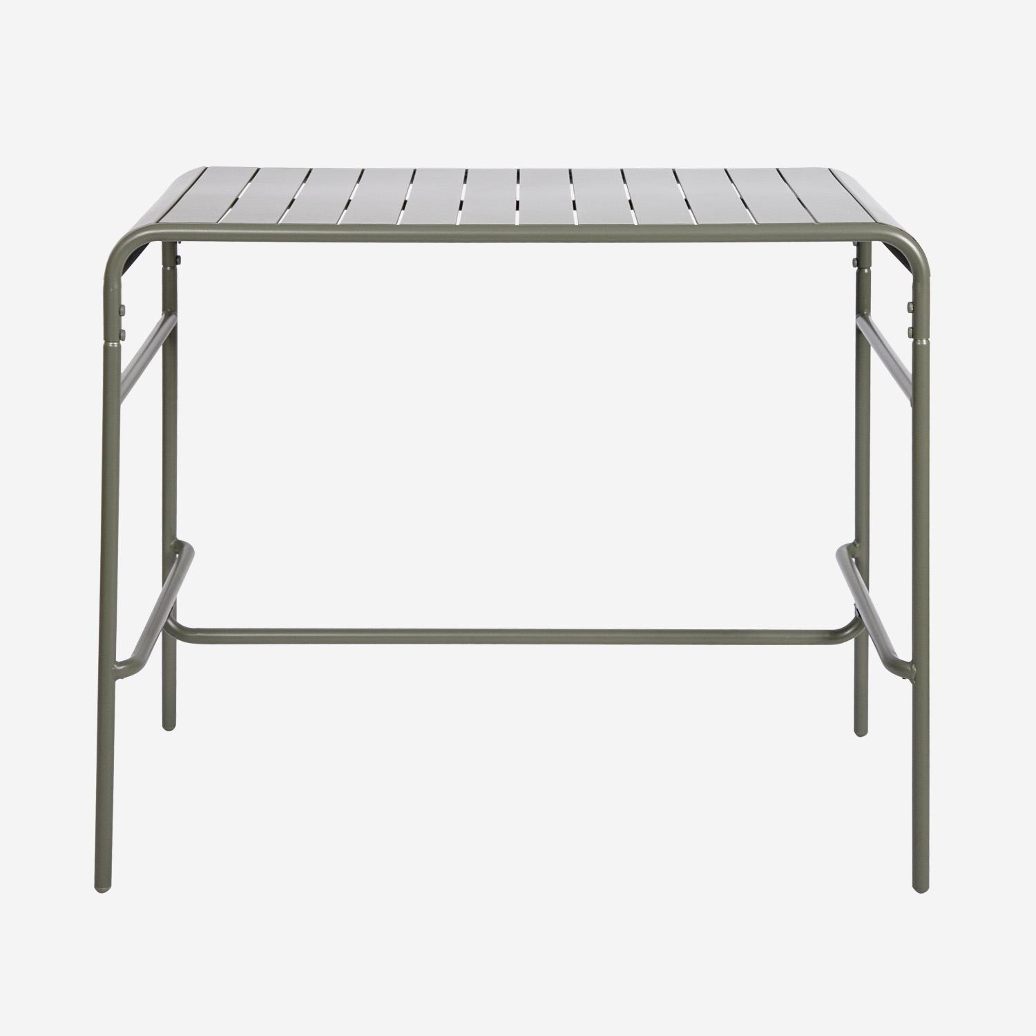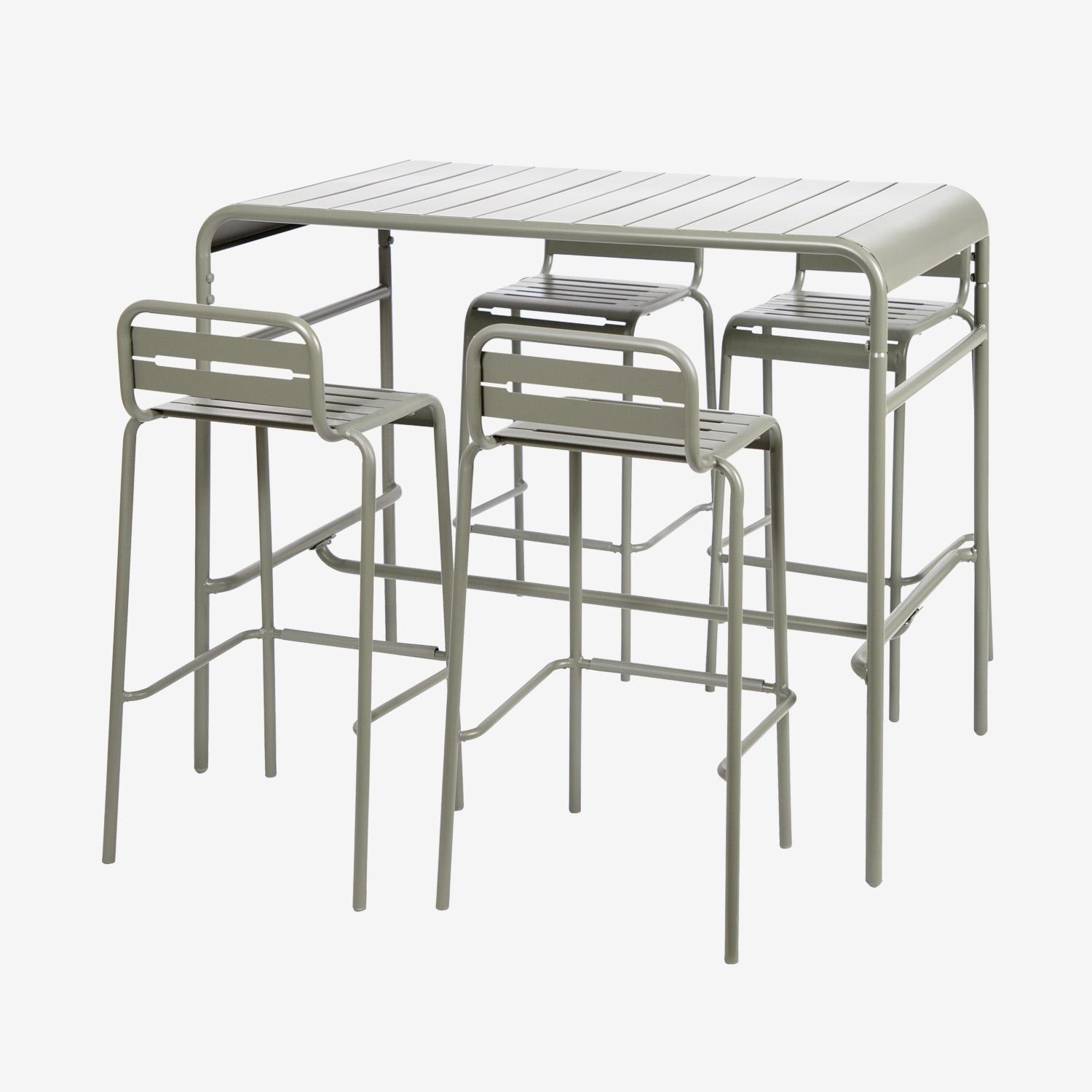 Tavolo da giardino alto, 4 sedie alte in acciaio, verde kaki