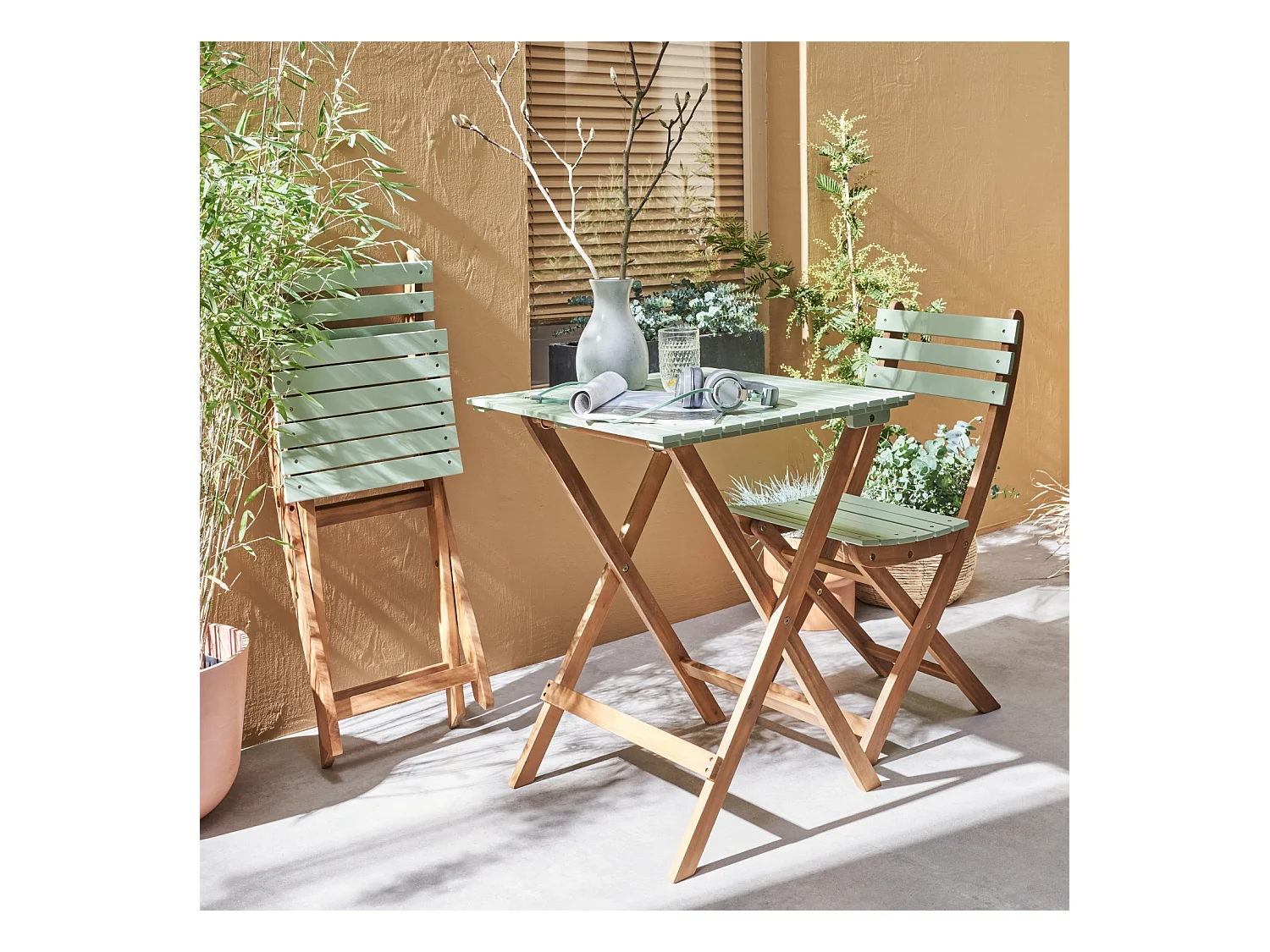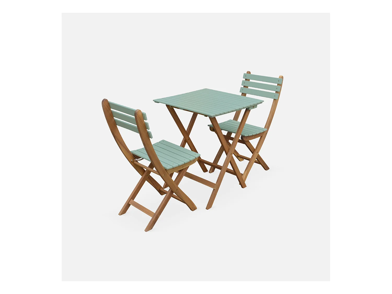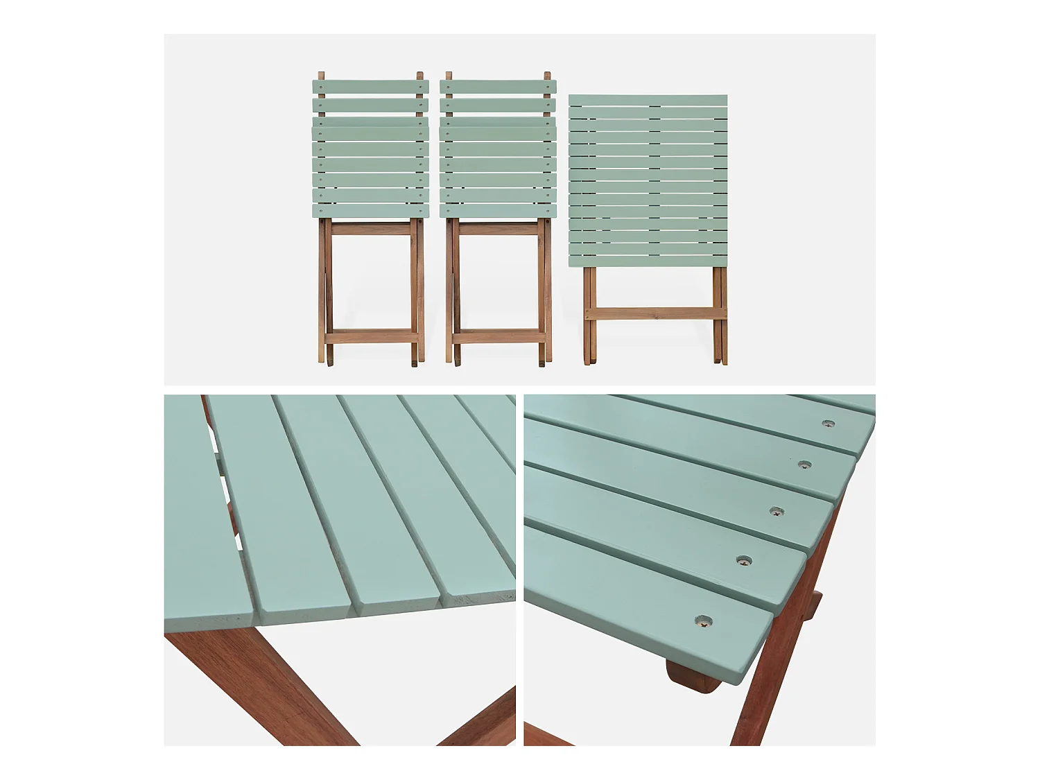 Set tavolo da giardino bistrot in acacia, 2 posti verde grigio