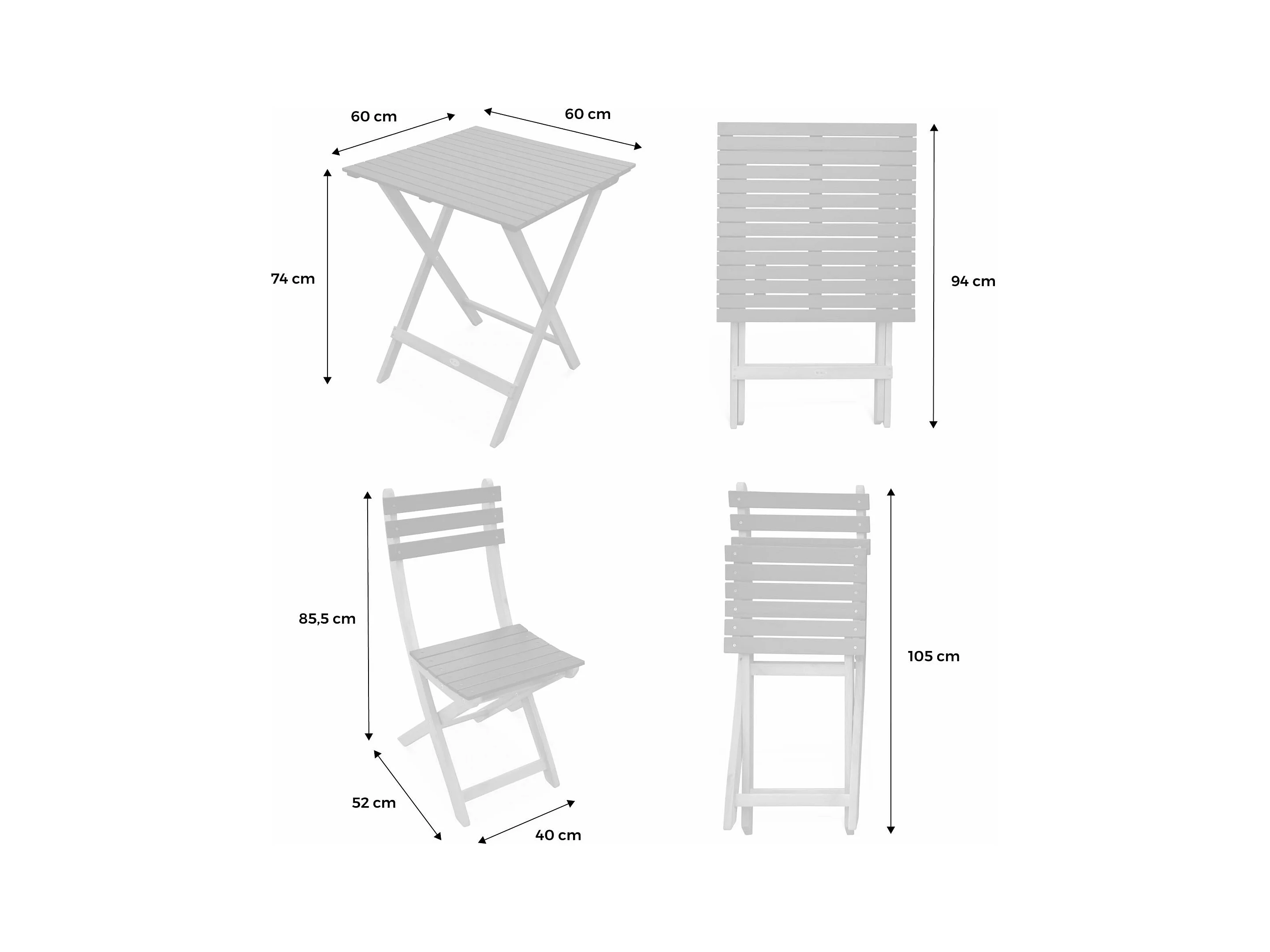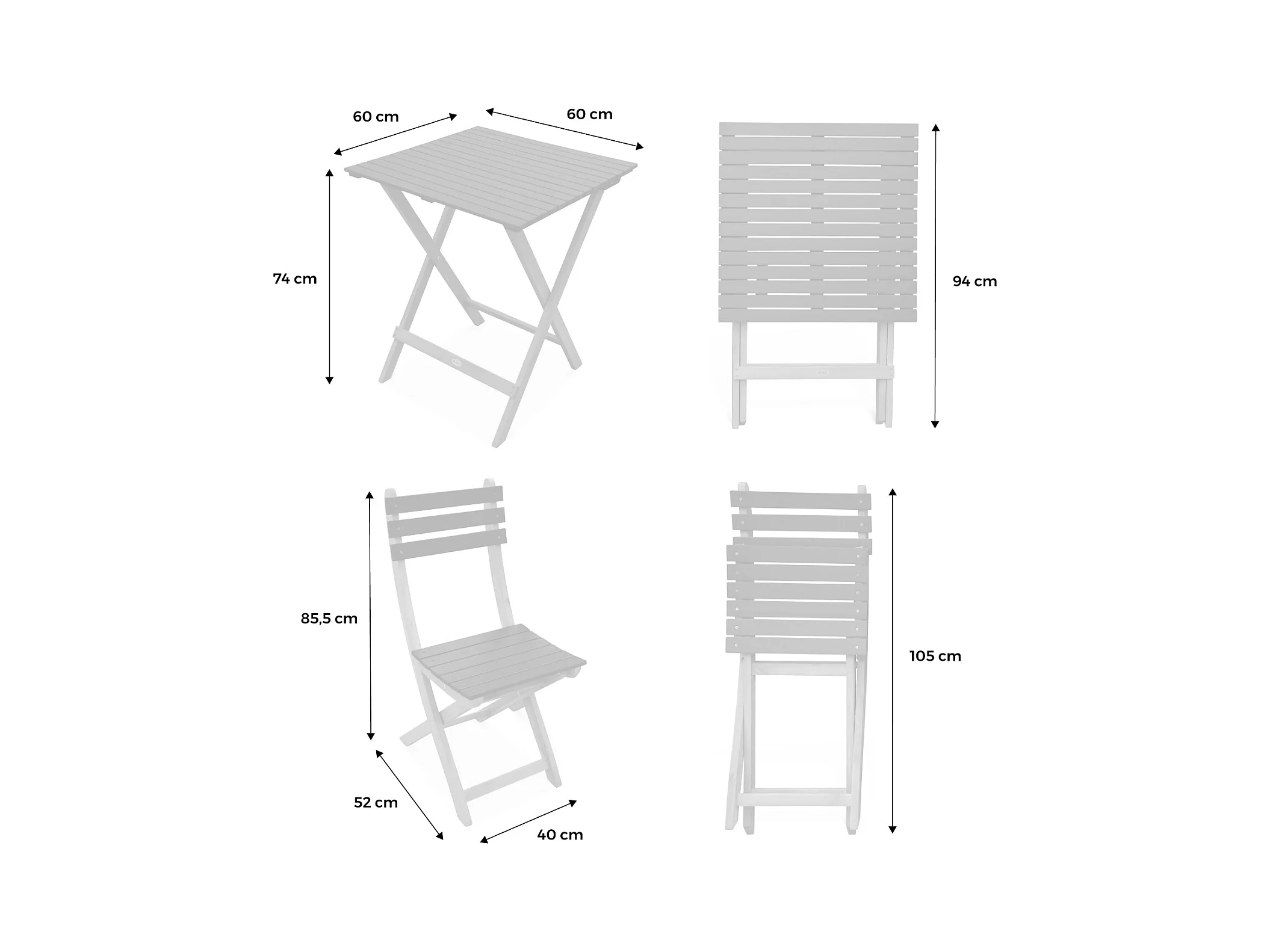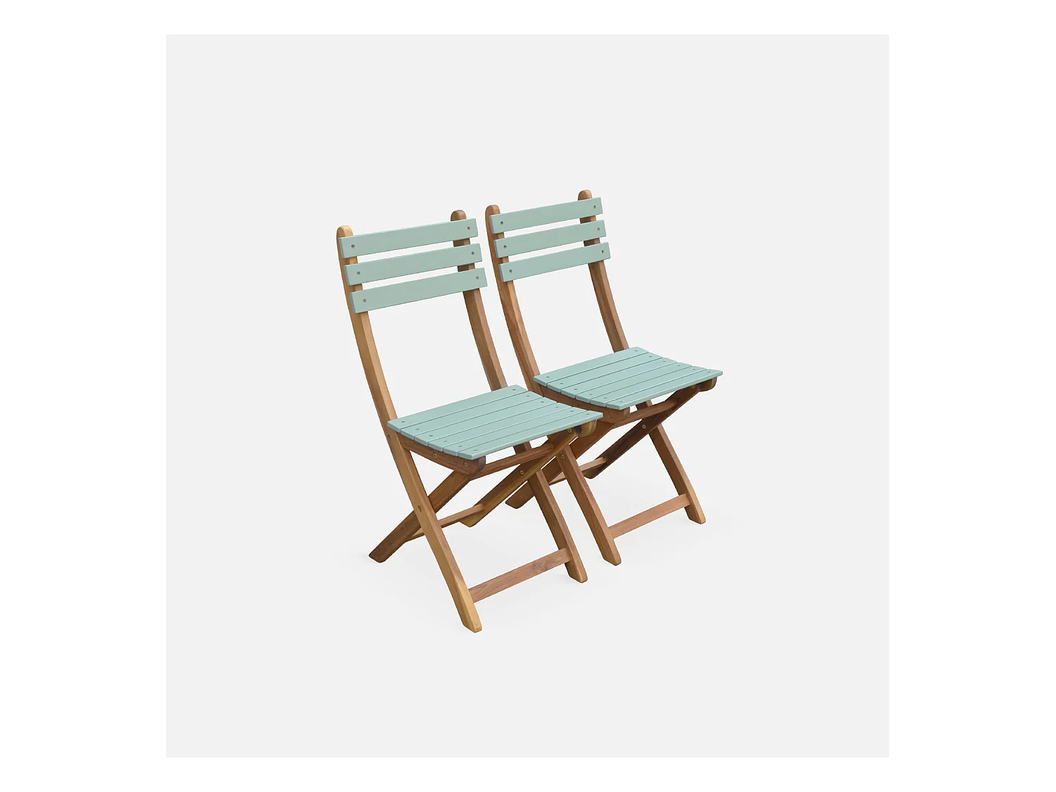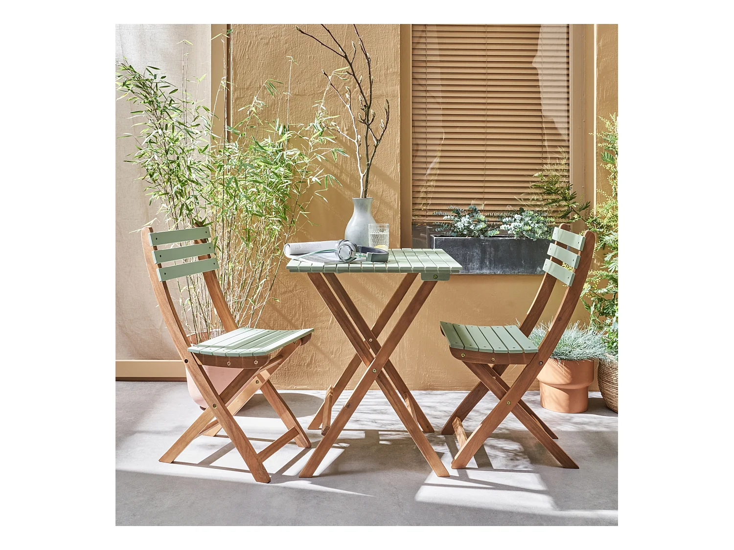 Set tavolo da giardino bistrot in acacia, 2 posti verde grigio