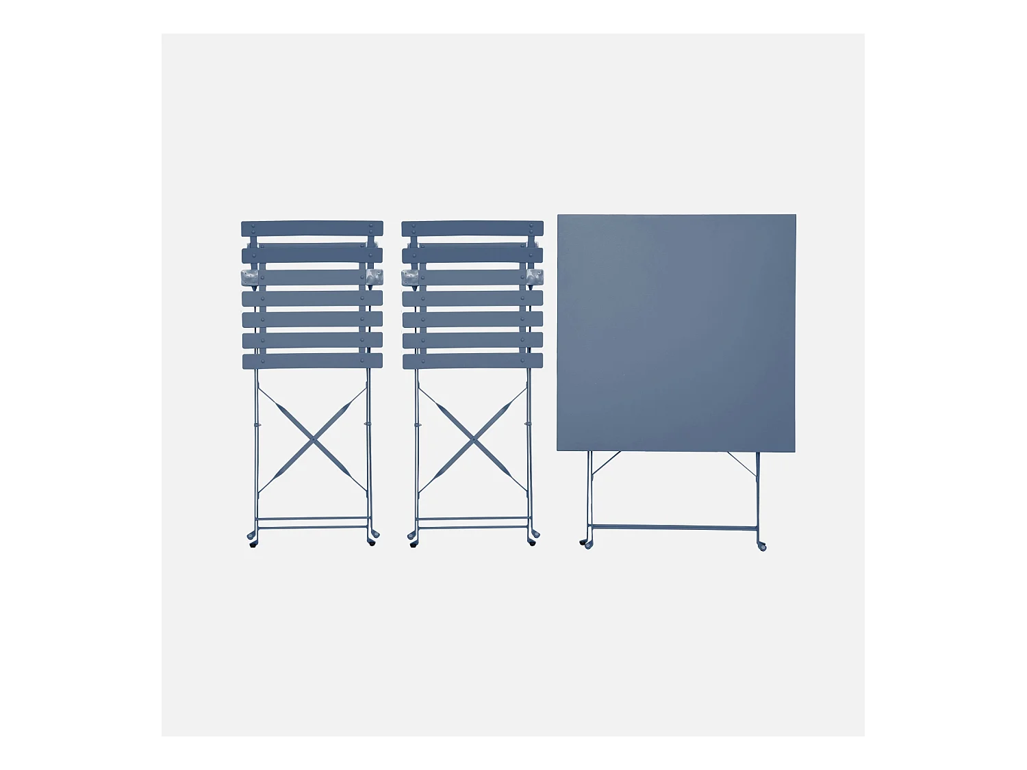 Tavolo da giardino bistrot pieghevole in metallo con 2 sedie, blu