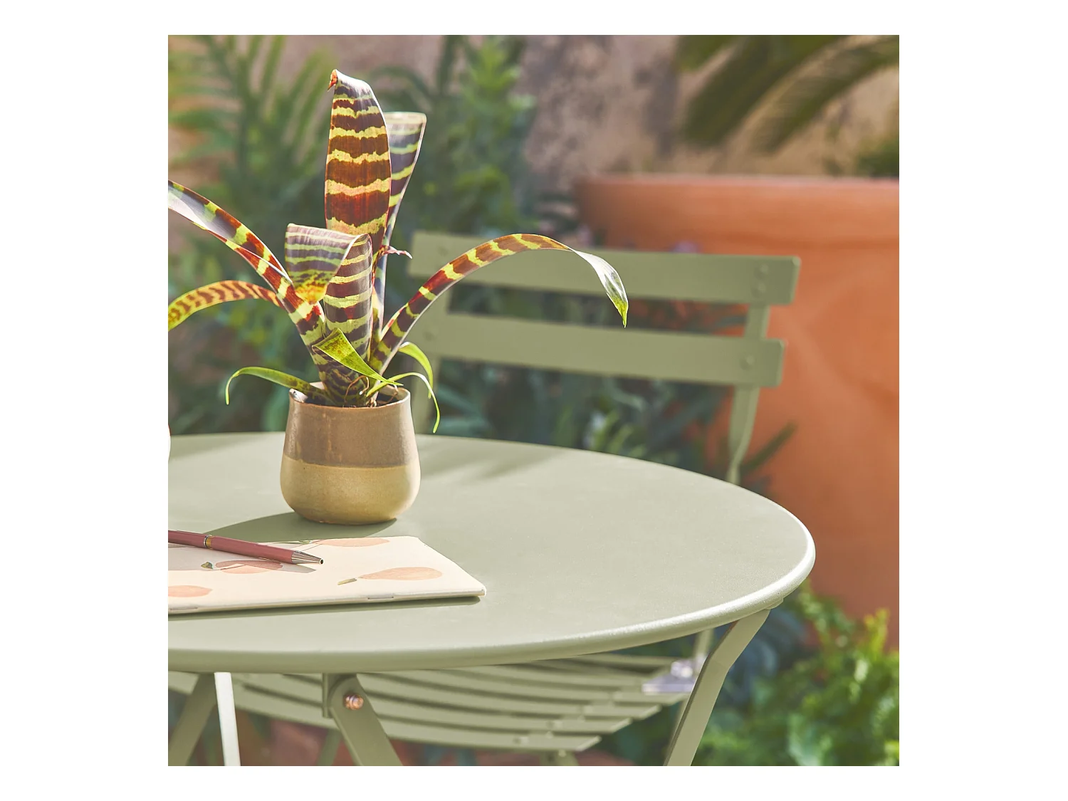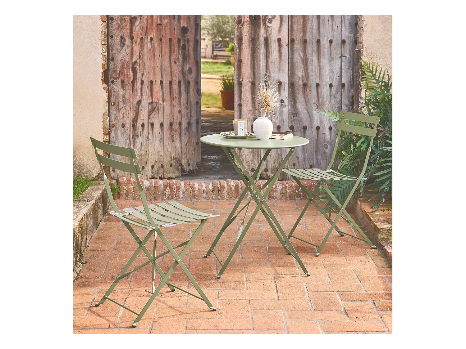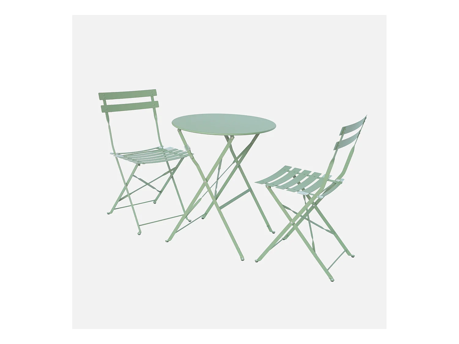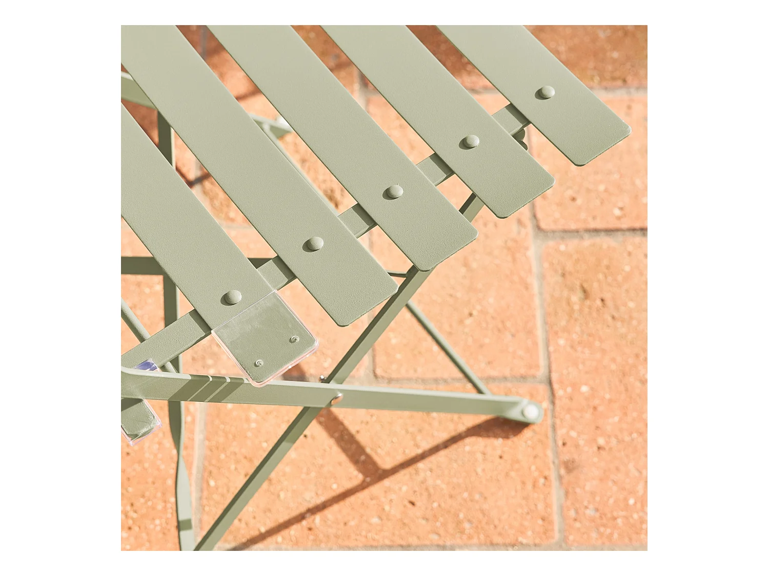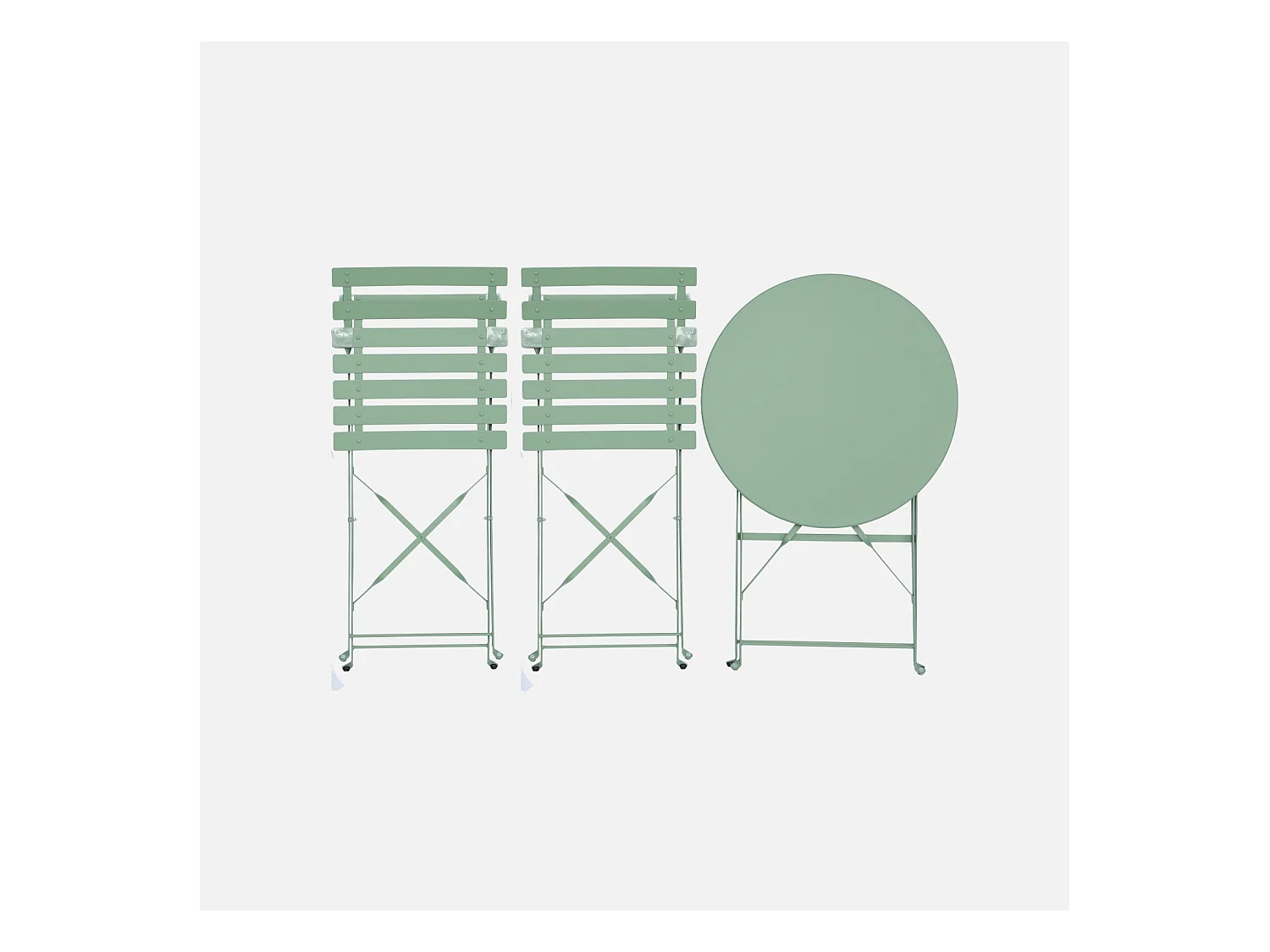 Set bistrot con tavolo e 2 sedie in acciaio verde salvia - YVONNE