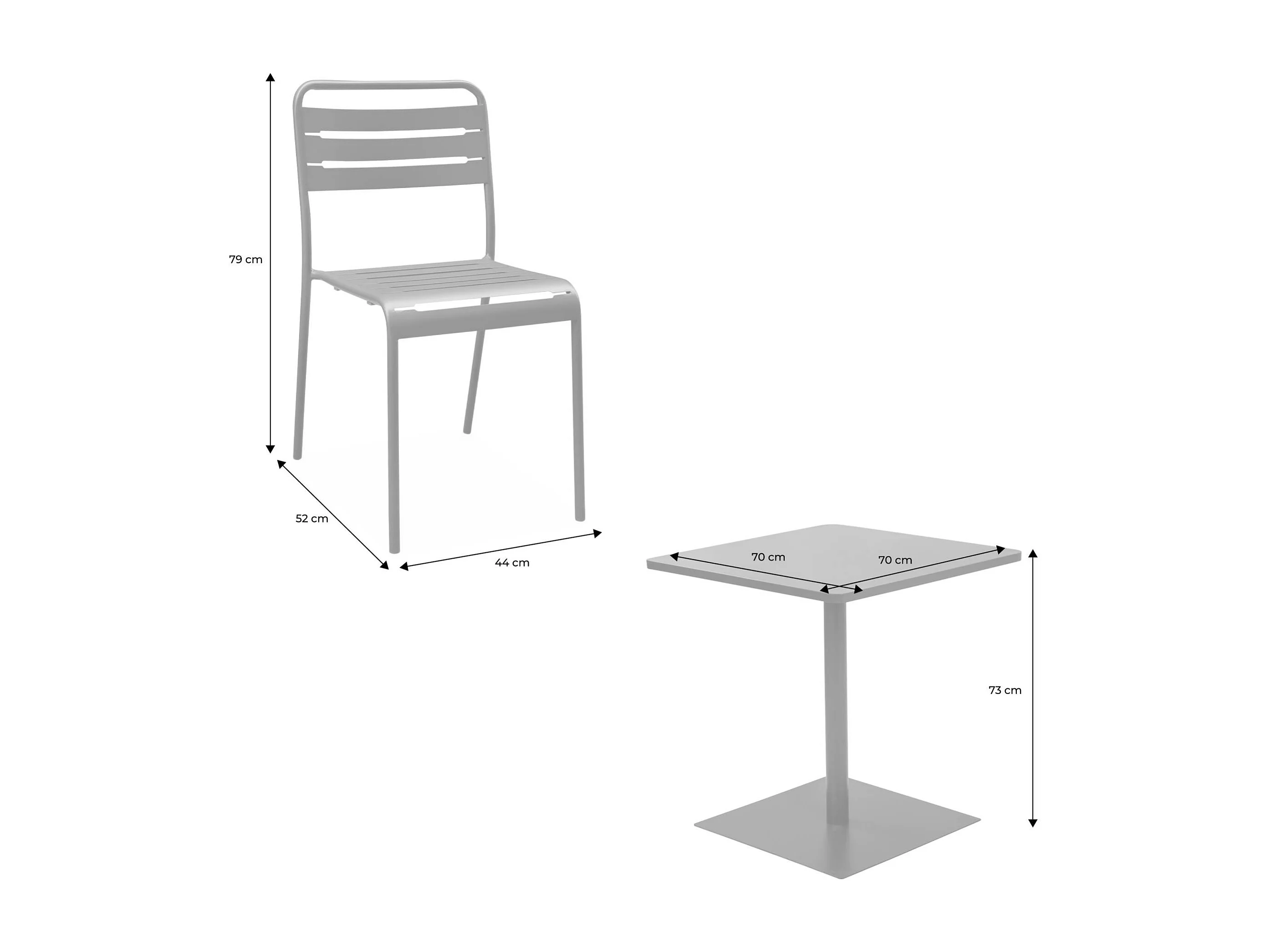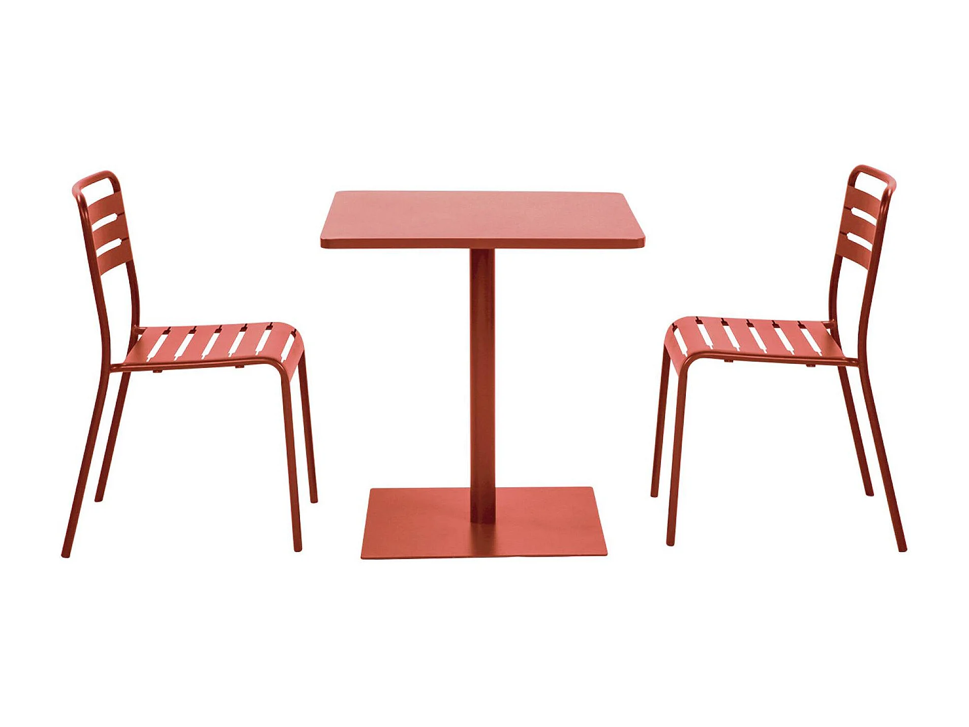 Set tavolo da giardino bistrot quadrato in acciaio con 2 sedie,