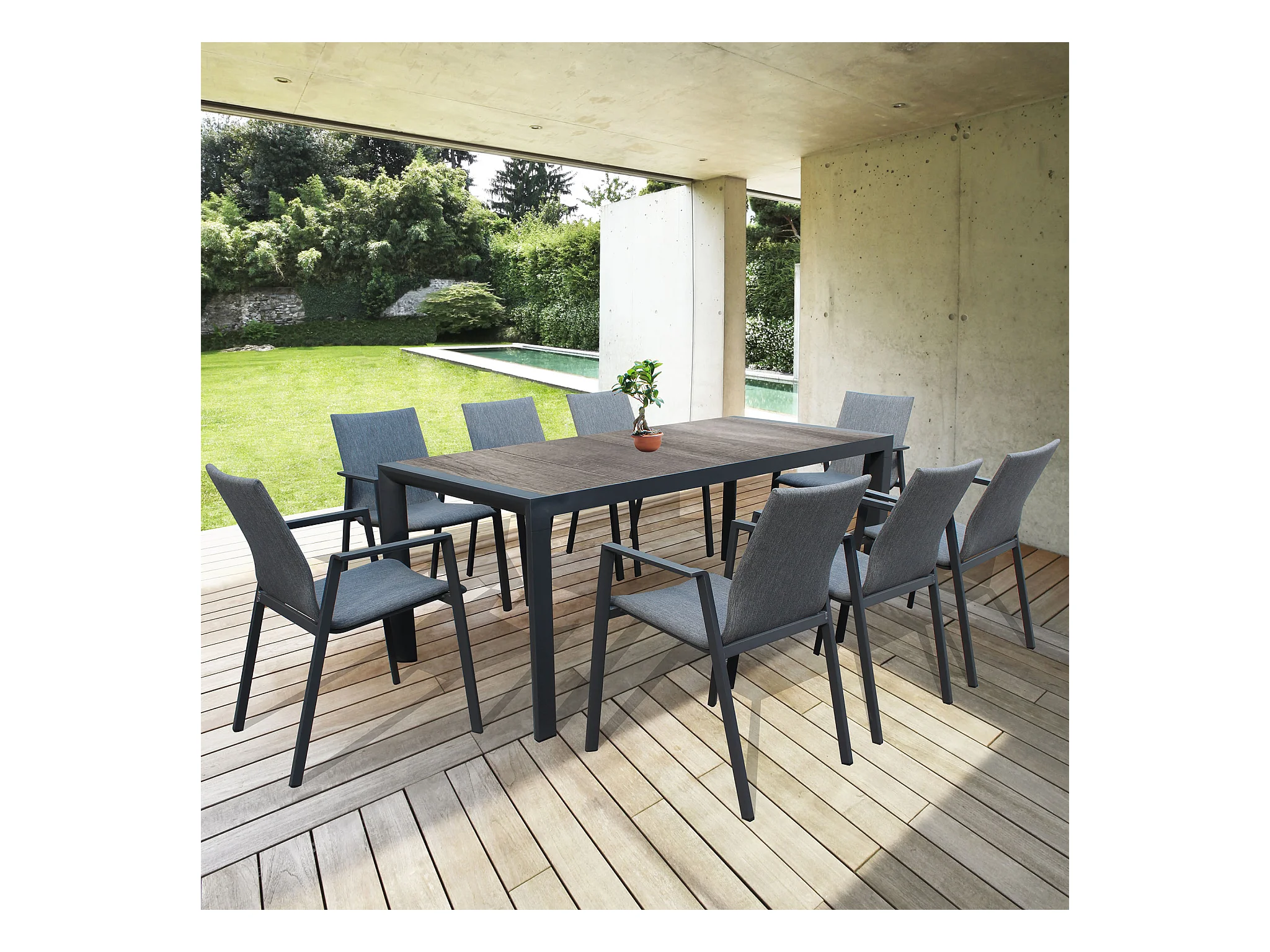 MilaniHome.it - Tavolo da giardino in alluminio con piano in ceramica effetto legno di design.di coloreAntracite