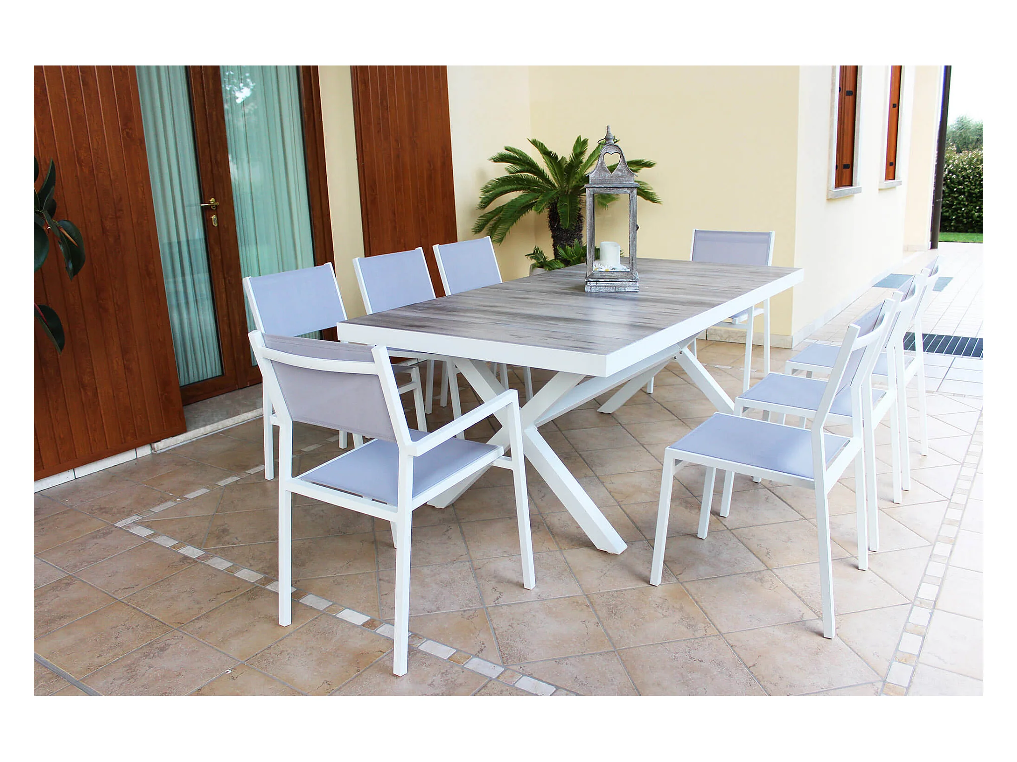 MilaniHome.it - tavolo da giardino in alluminio e ceramica effetto legno di design moderno per esternocm 200 x 100 x 75 hdi coloreBianco