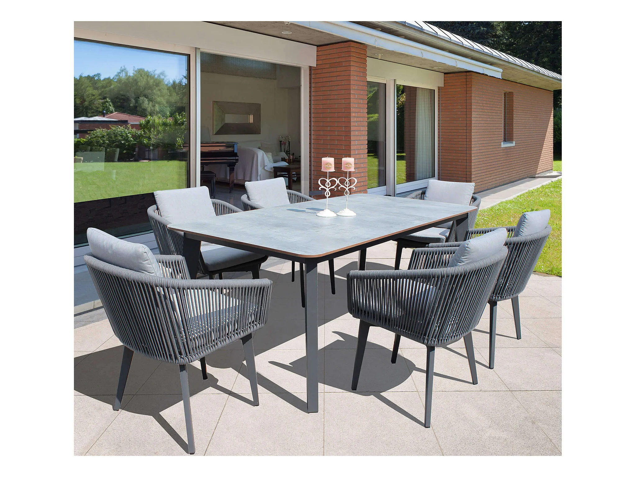 MilaniHome.it - Tavolo da giardino in alluminio con piano in ceramica effetto legno di design.di coloreAntracite
