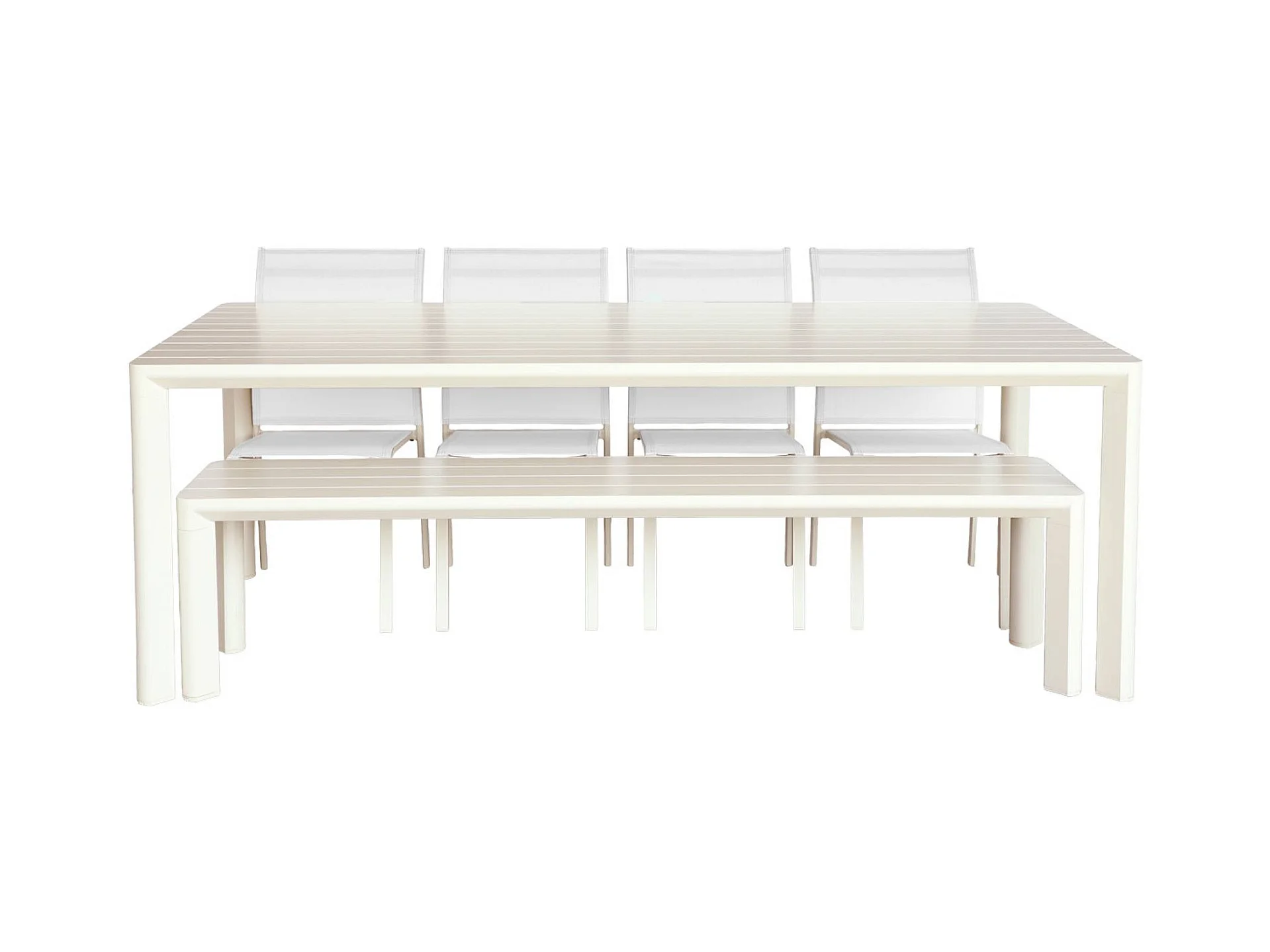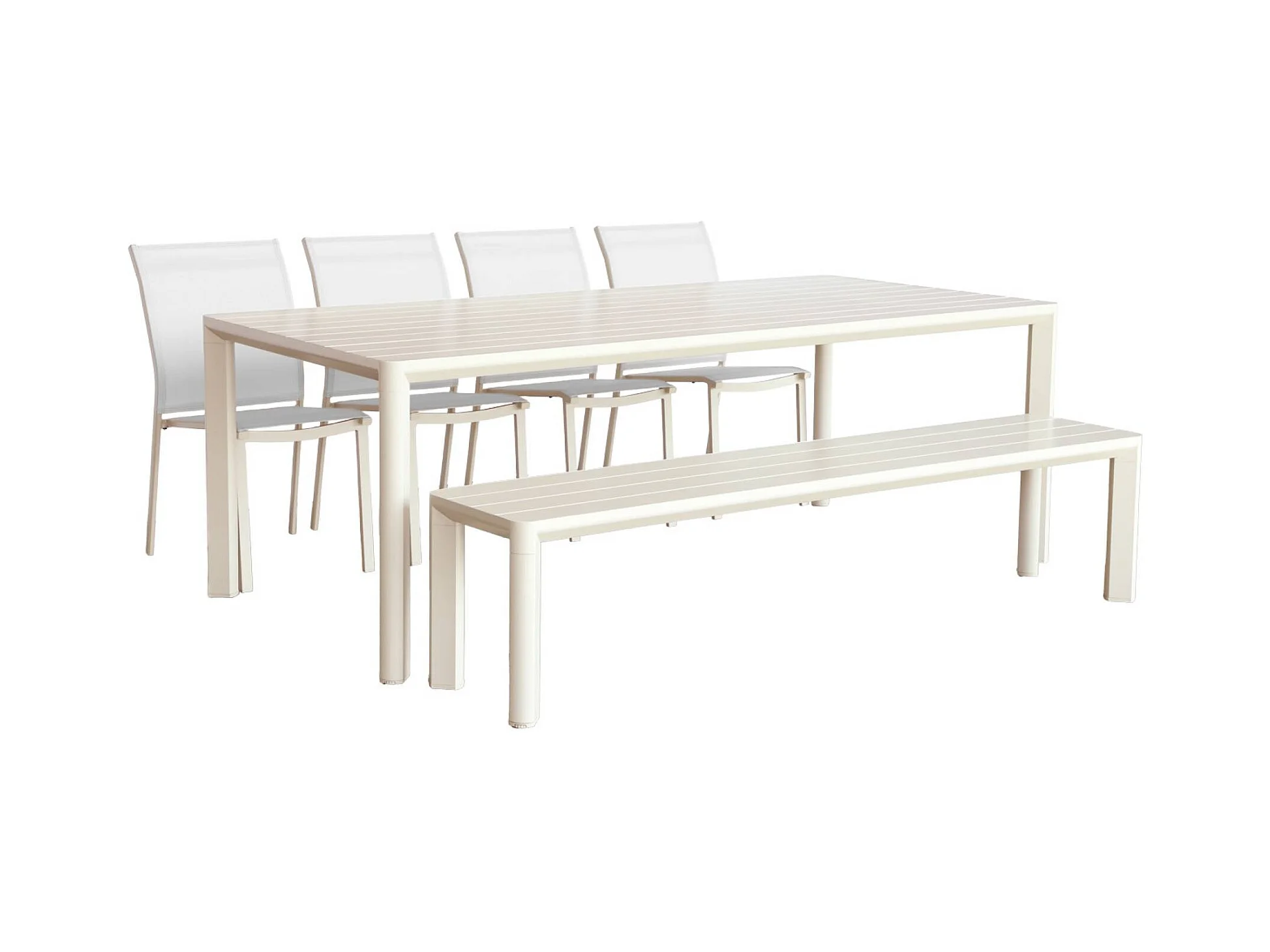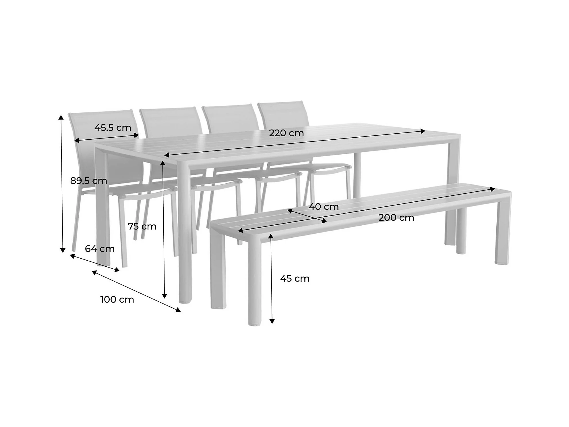 Tavolo da giardino in alluminio e textilene, 1 panchina e 4 sedie,