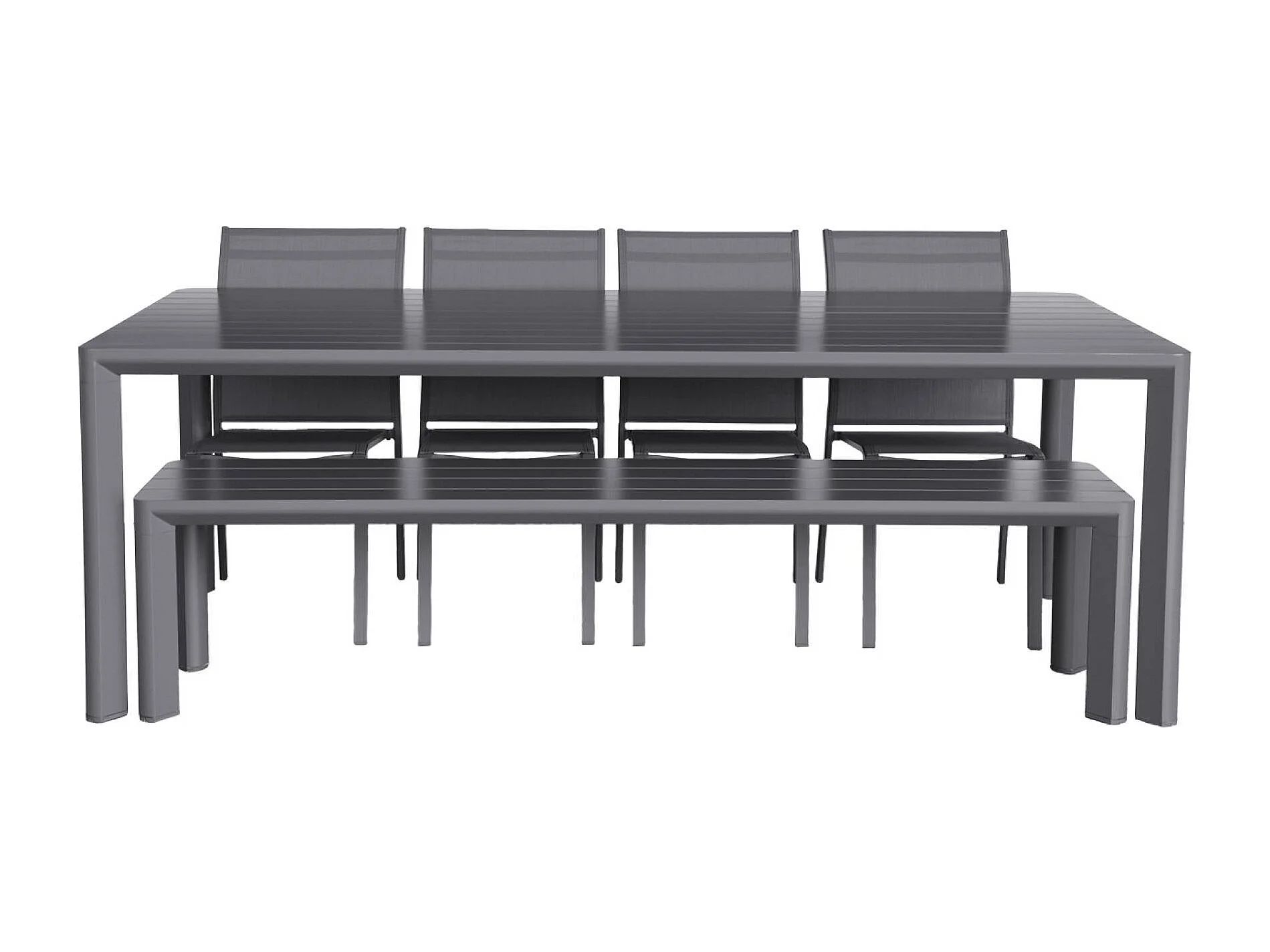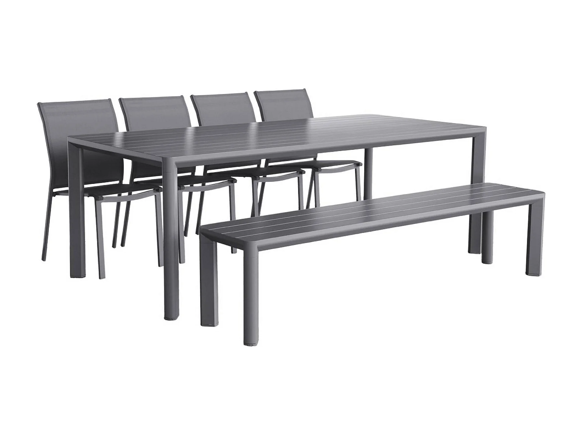 Set tavolo da giardino in alluminio e textilene con 1 panchina e 4