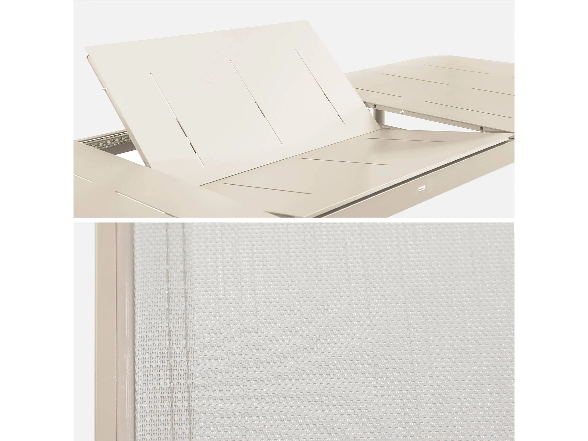 Tavolo da giardino in alluminio e textilene, allungabile, 8 sedie,