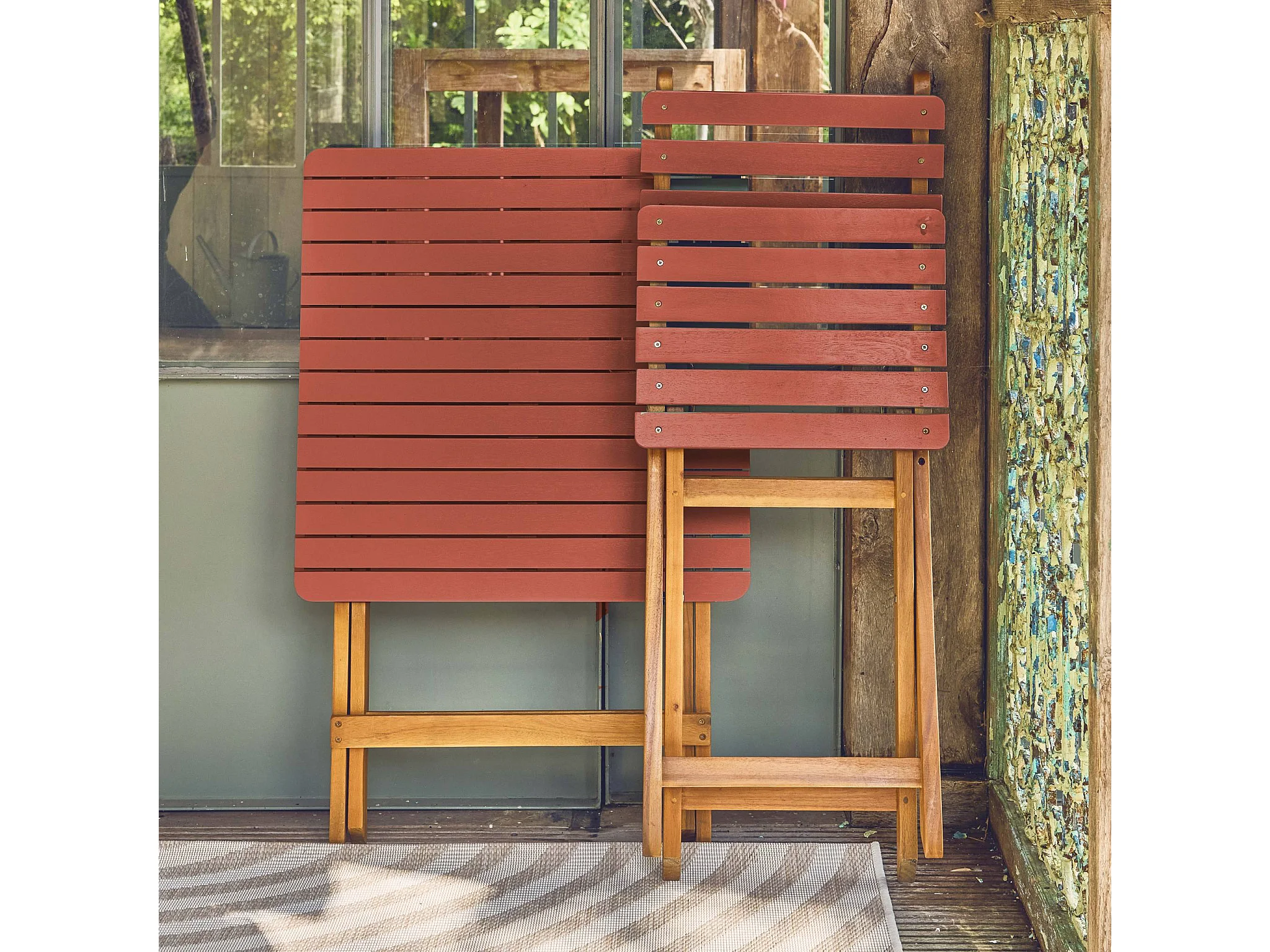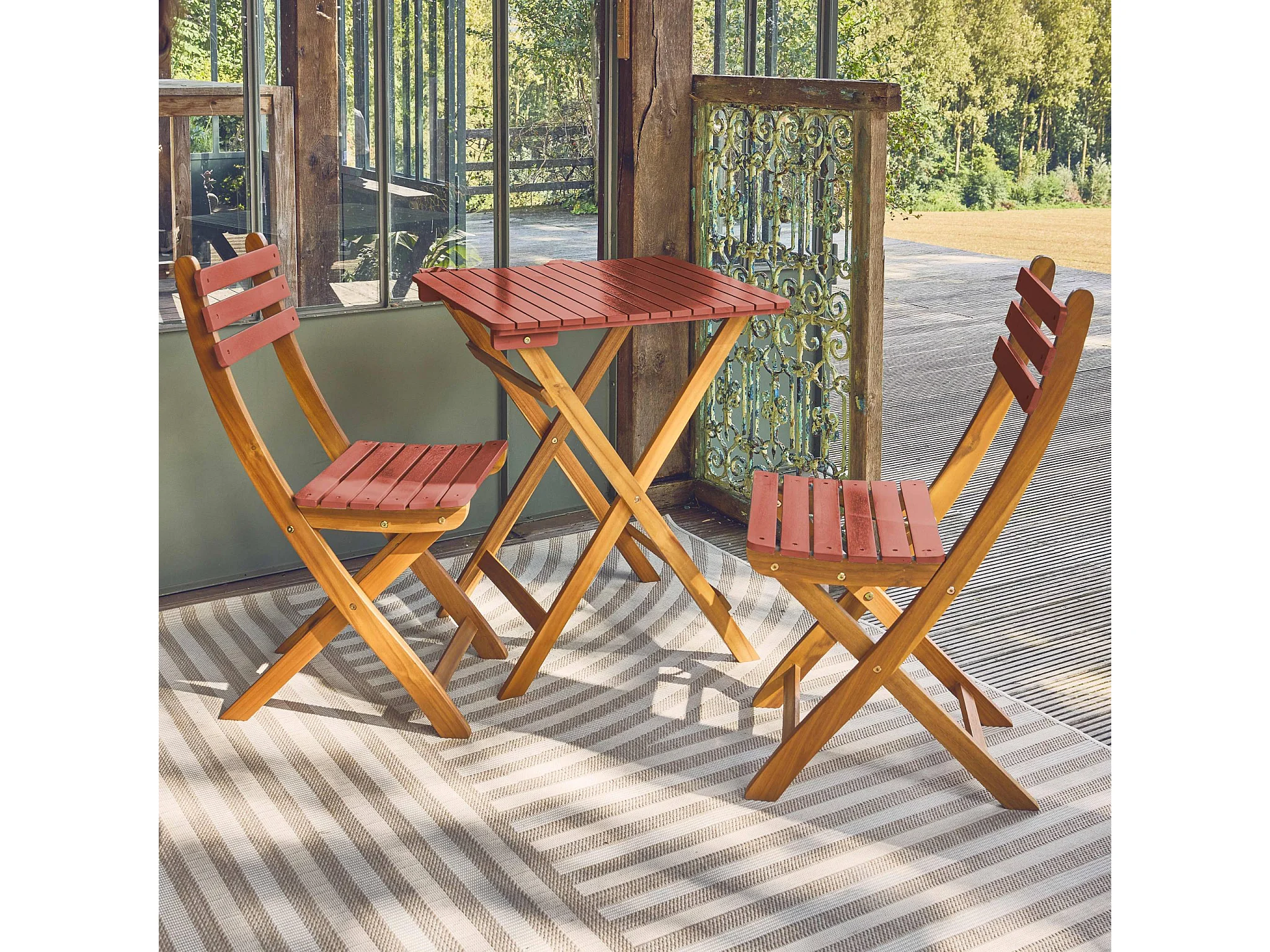 Set tavolo da giardino in legno di acacia con 2 sedie pieghevoli,