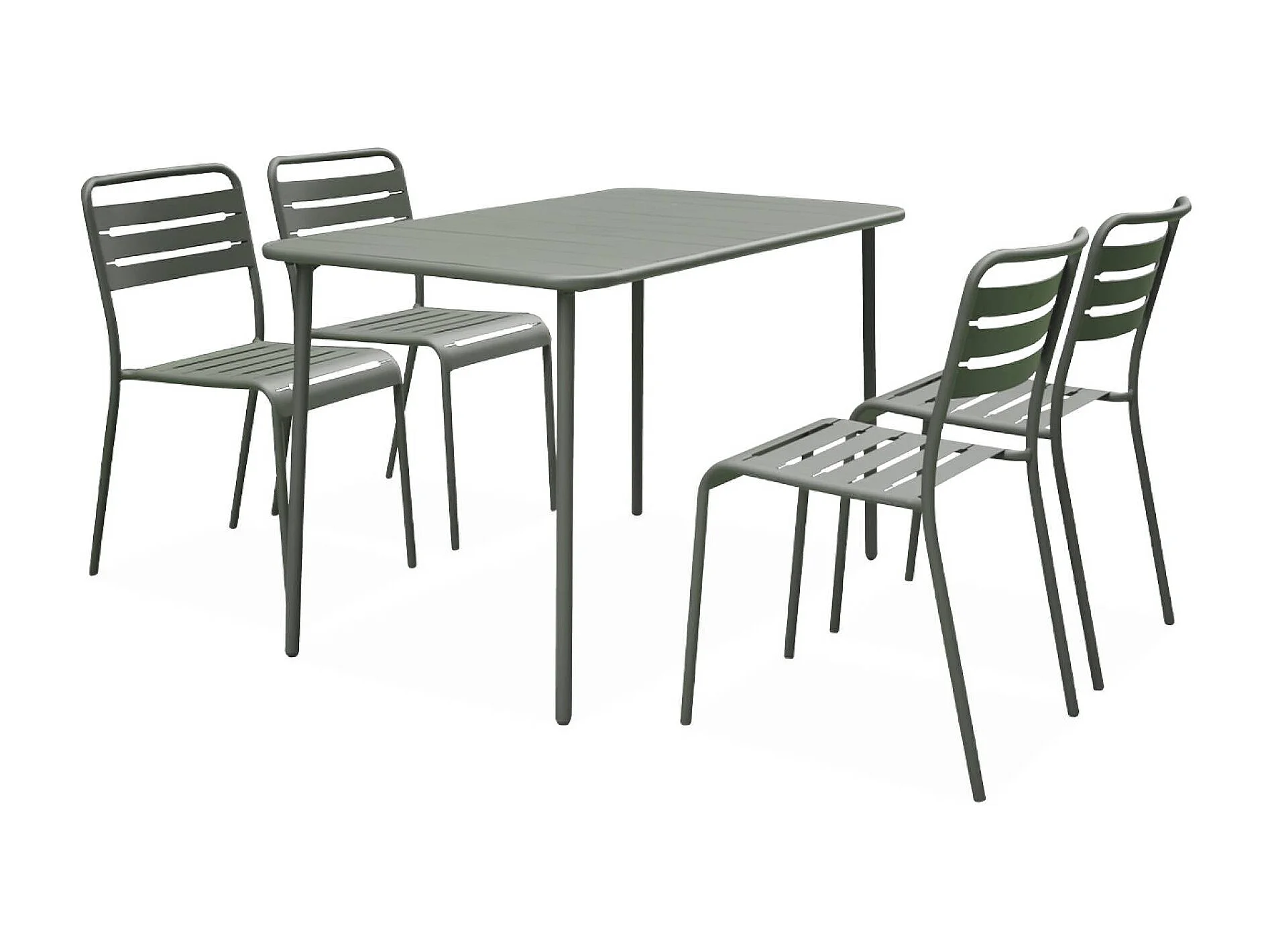 Tavolo da giardino in metallo, 4 sedie, verde kaki