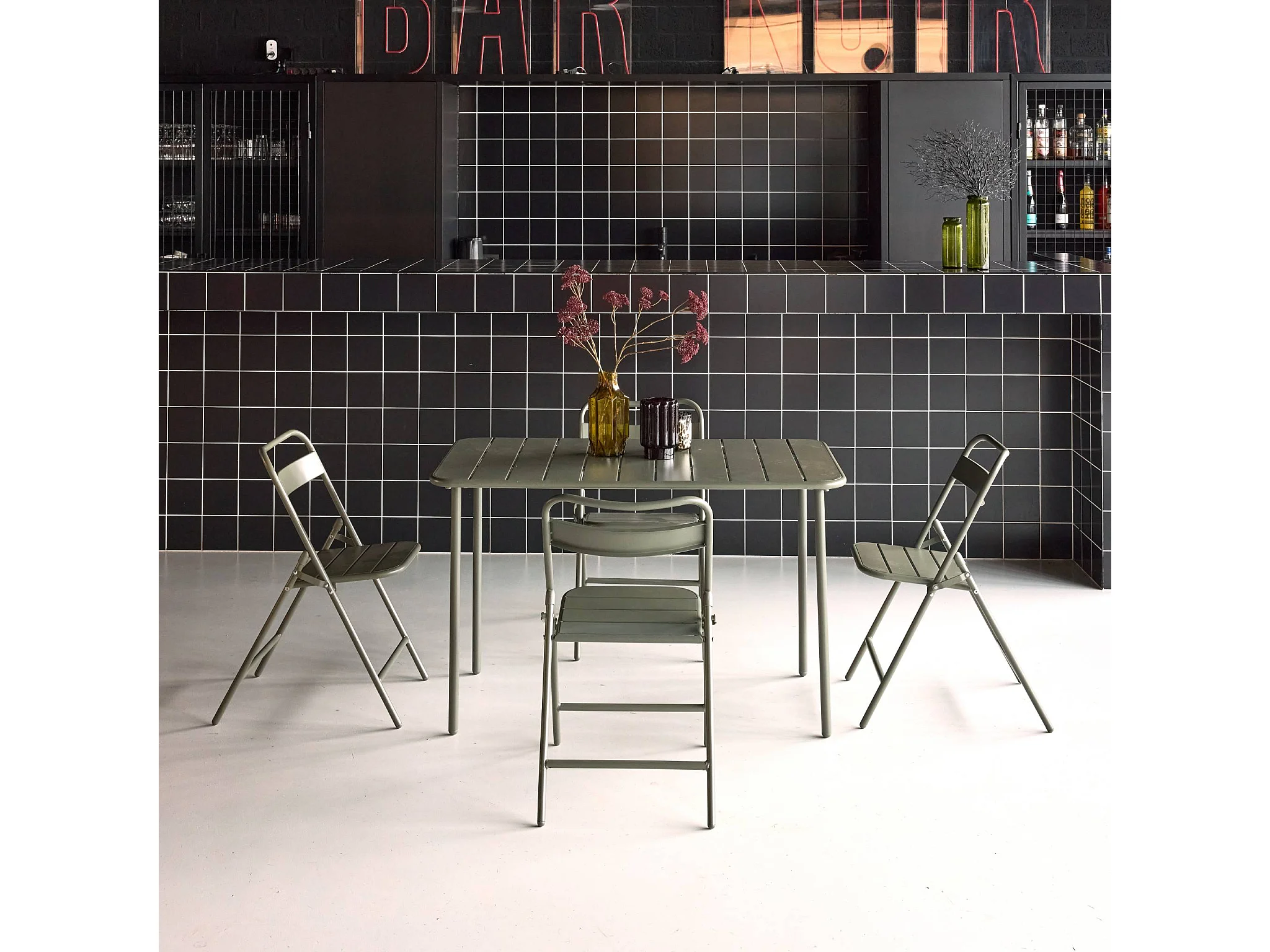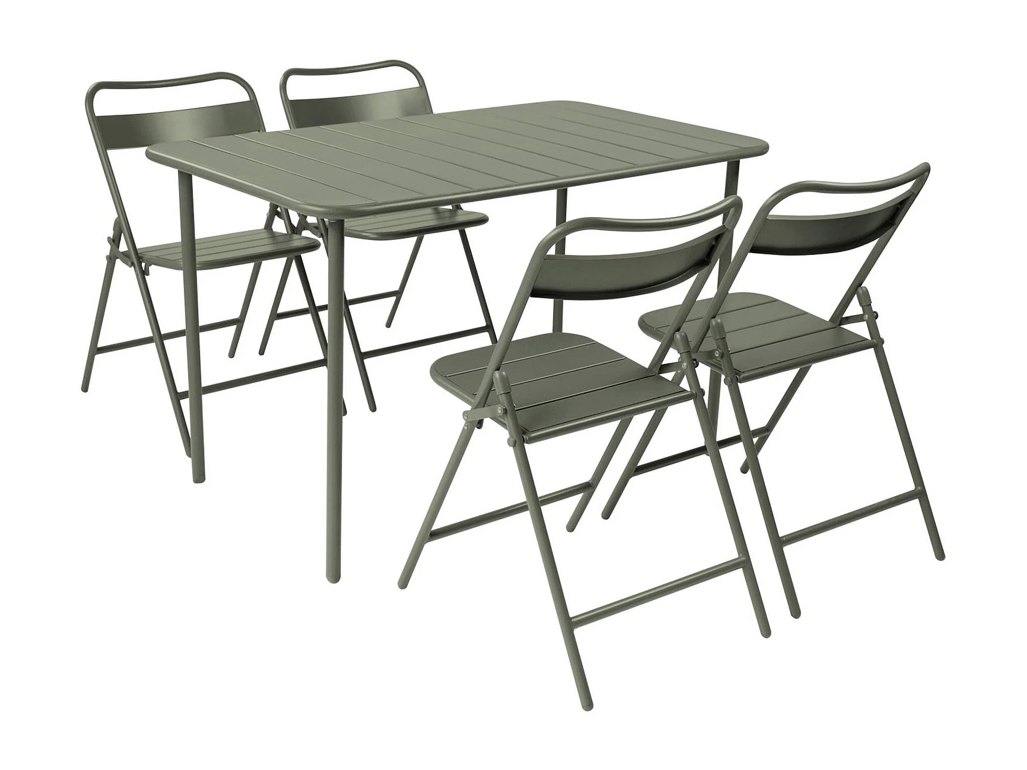 Tavolo da giardino in metallo 4 sedute, 120cm, verde kaki