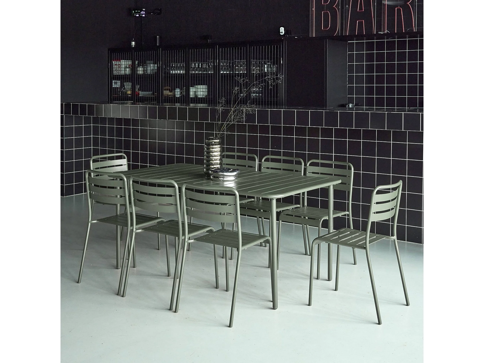 Set tavolo da giardino in acciaio con 8 sedie, 160cm, verde kaki