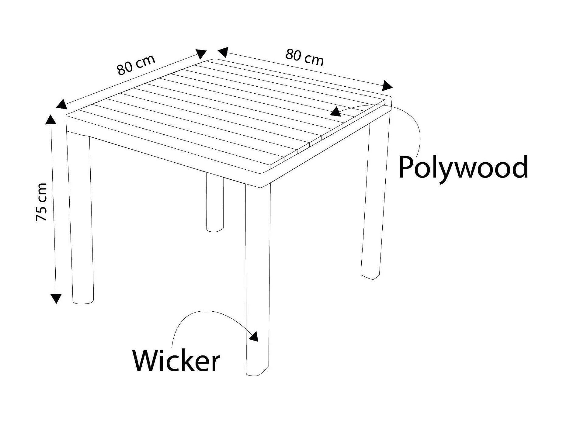 MilaniHome.it - Tavolo Da Giardino Moderno Di Design Cm 80x80 Marrone In Wicker Rattan Sintetico E Polywood Da Esternodi coloreMarrone