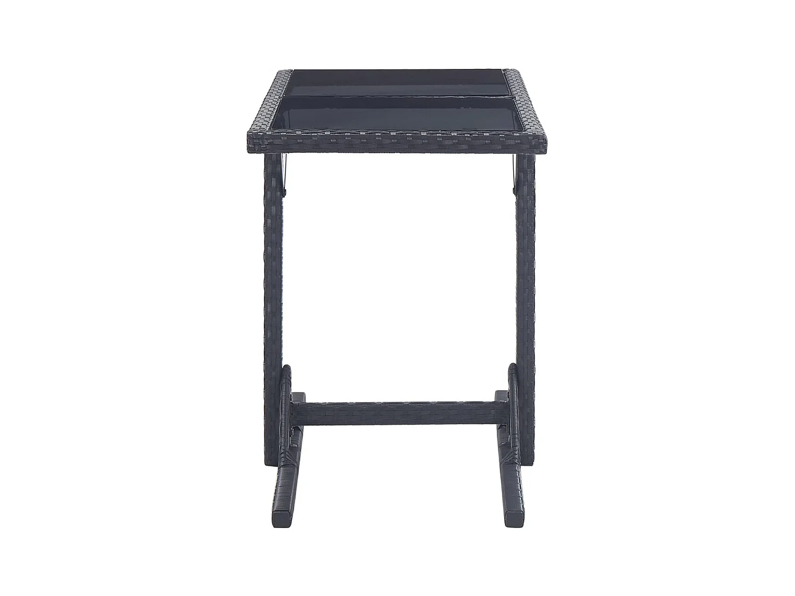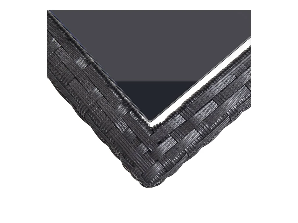 Tavolo da Giardino Piano in Vetro Nero 110x68x70 cm Polyrattan