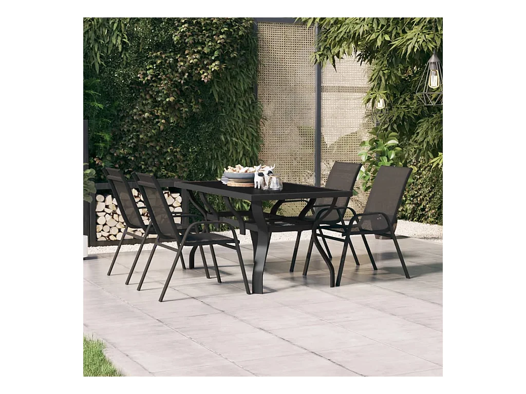 Tavolo da Giardino Nero 140x70x70 cm in Acciaio e Vetro