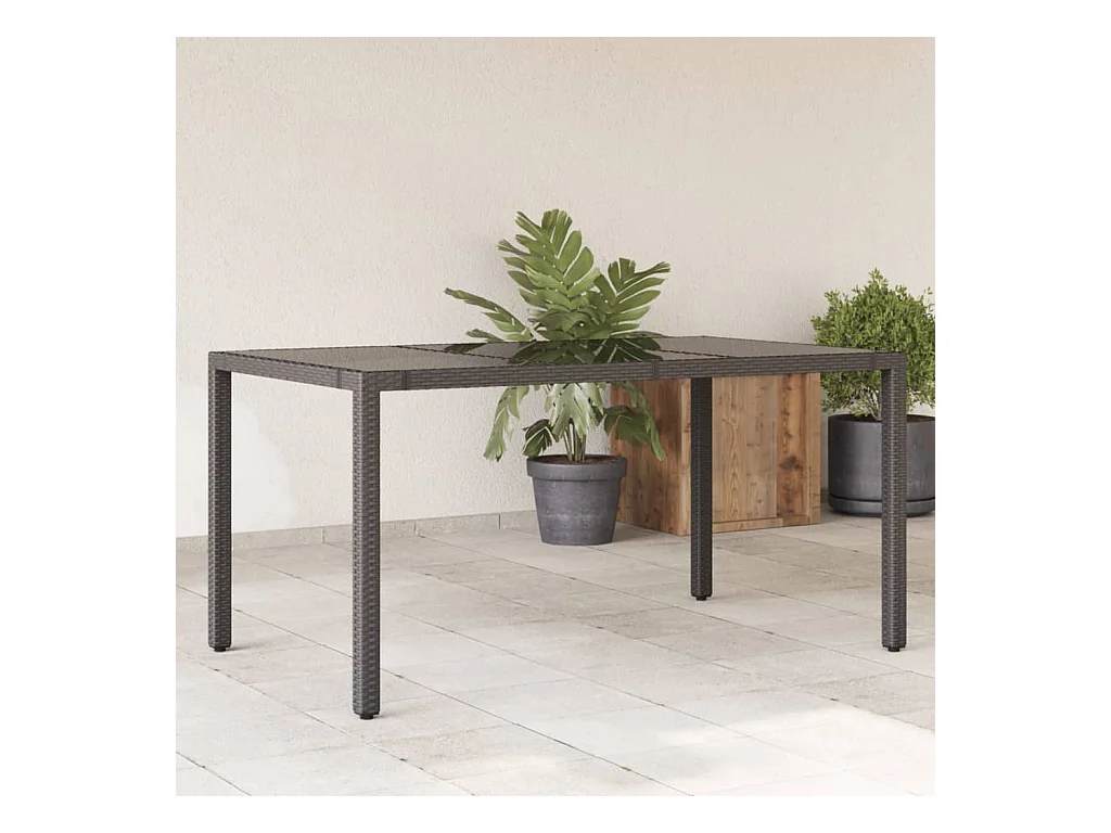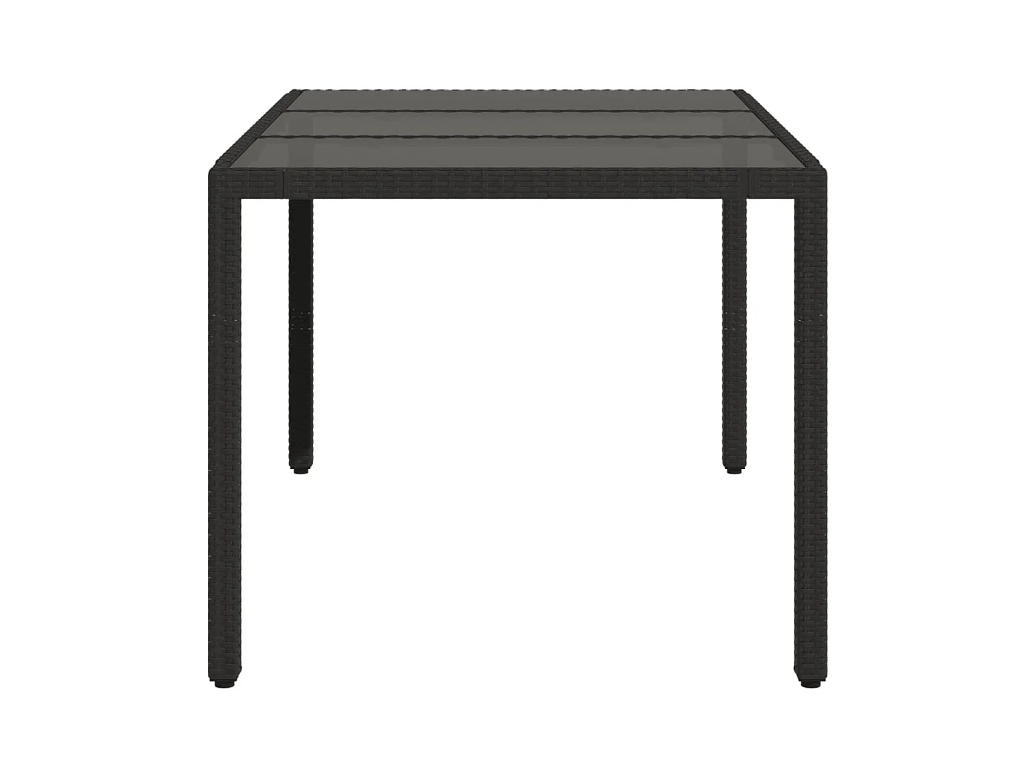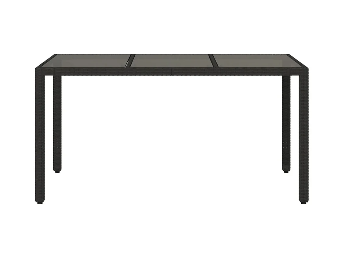 Tavolo da Giardino Piano in Vetro Nero 150x90x75 cm Polyrattan