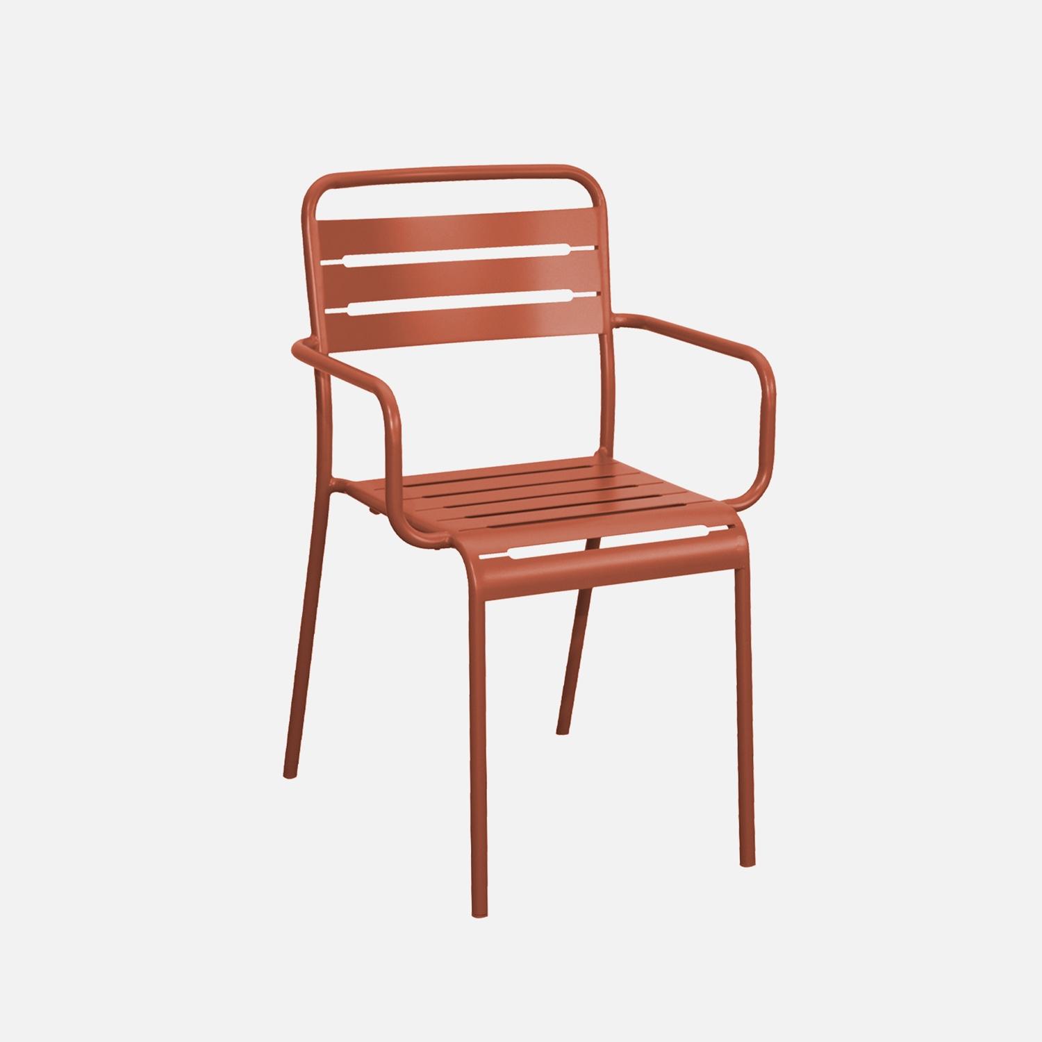 Set tavolo da giardino in metallo con 2 sedie, terracotta