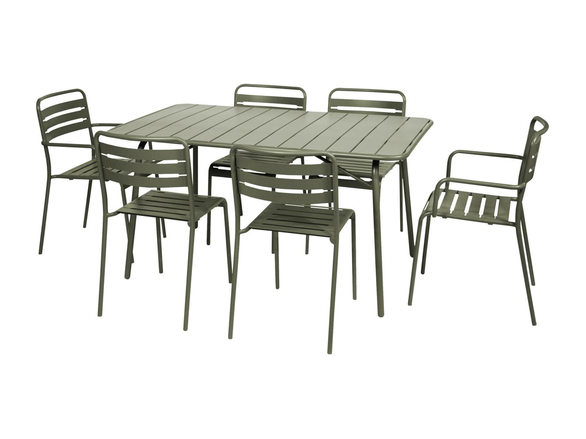 Set tavolo da giardino in metallo con 6 sedie, verde