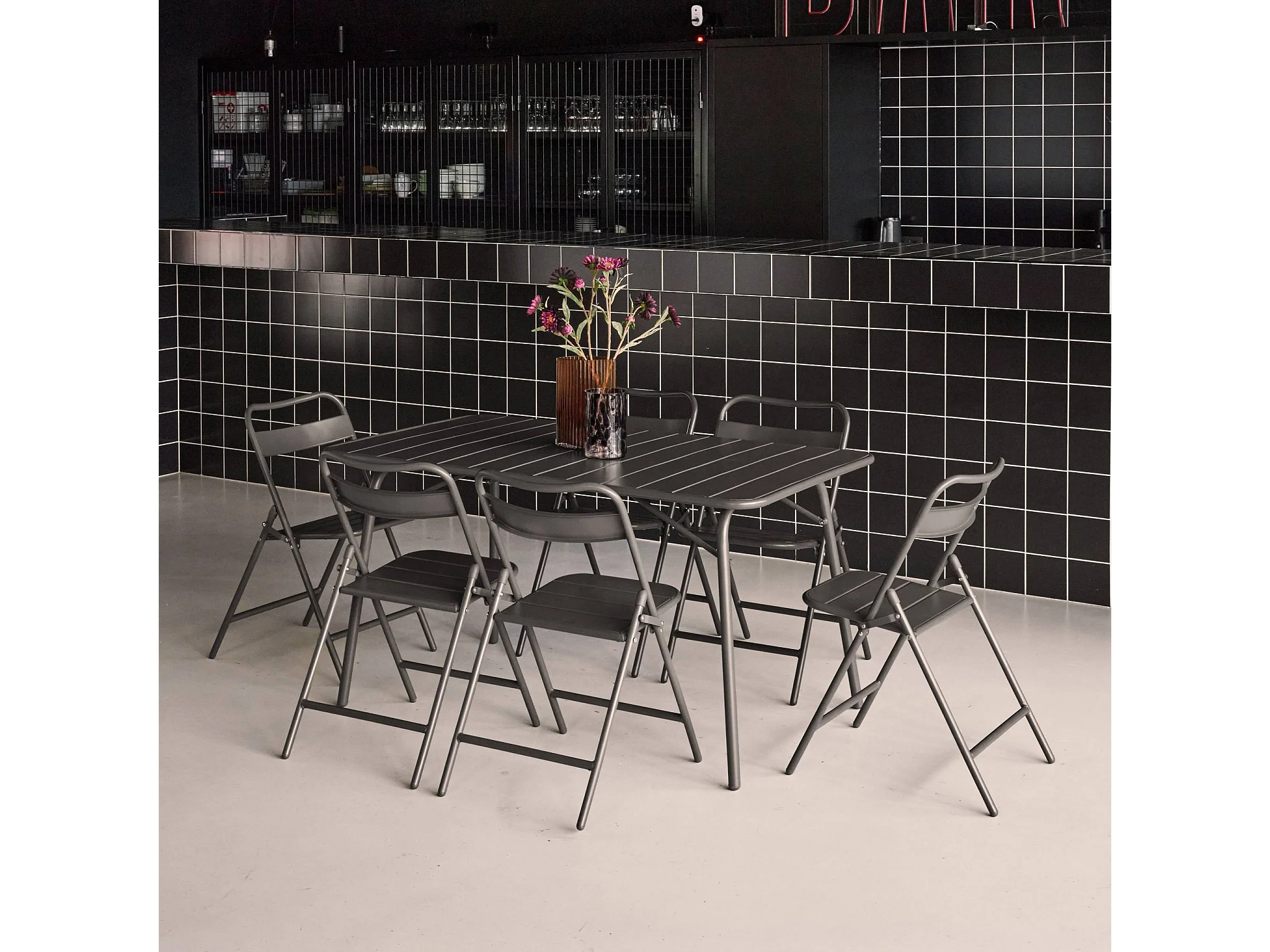 Set tavolo da giardino bistrot pieghevole in metallo con 6 sedie,